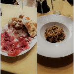 Esperienza di cucina fusion nel convivio di primavera al ristorantino del Cin Cin a Vercelli. La cucina piemontese a braccetto con quella sarda grazie alla disponibilità e complicità dello chef Pietro Sansaro. L’antipasto parla piemontese: battuta di fassona, insalata russa, vitello tonnè, tipicità della regione Piemonte. Il riso, elemento comune tra le due Regioni, diventa protagonista del primo piatto, accompagnato dalle cozze di Olbia e dalla bottarga. Il secondo piatto ha come elemento in comune il metodo di cottura, quella lenta della carne brasata a bassa temperatura nel vino. Mentre questa tecnica di cottura in Sardegna viene generalmente usata per il cinghiale nel menu spicca la guancia di maialino. Il vino non è il Barolo, ma il Cannonau. Carne accompagnata da un cremoso di pane carassau. Nel dolce nessuna fusion: almeno dichiarata. E la torta dello chef Pietro Sansaro che ha voluto mettere la firma al menu. Il fusion però emerge: una torta con crema gianduia, con le nocciole piemontesi, accompagnata da un mirto della Gallura.