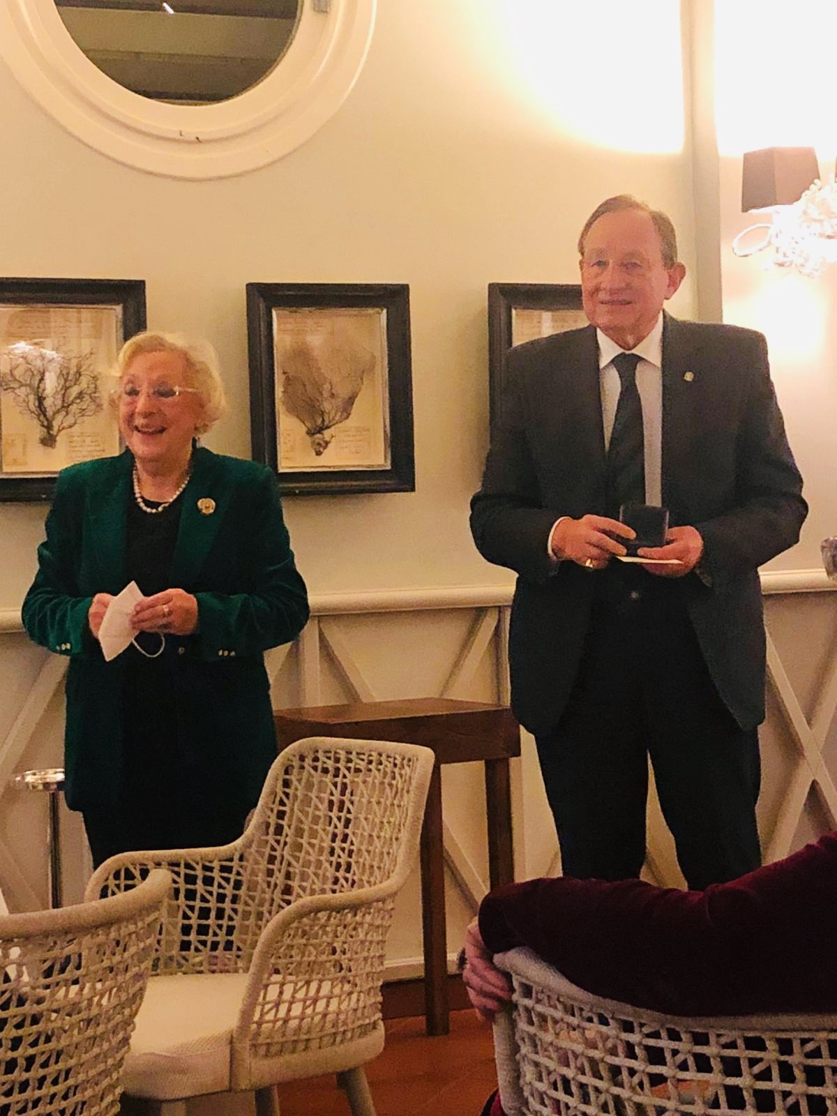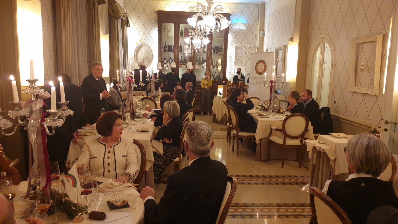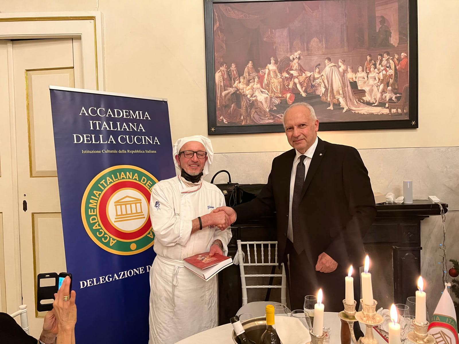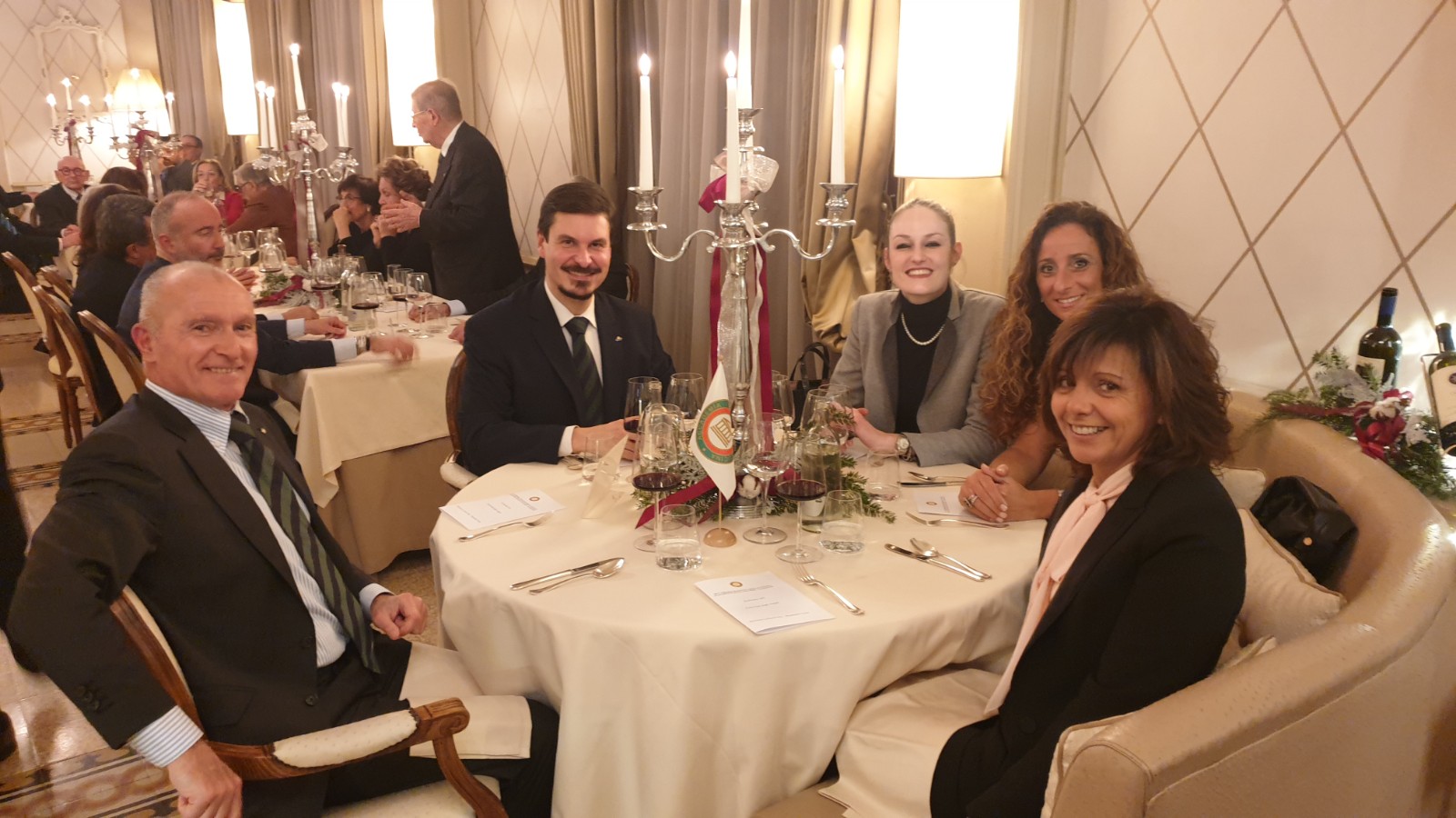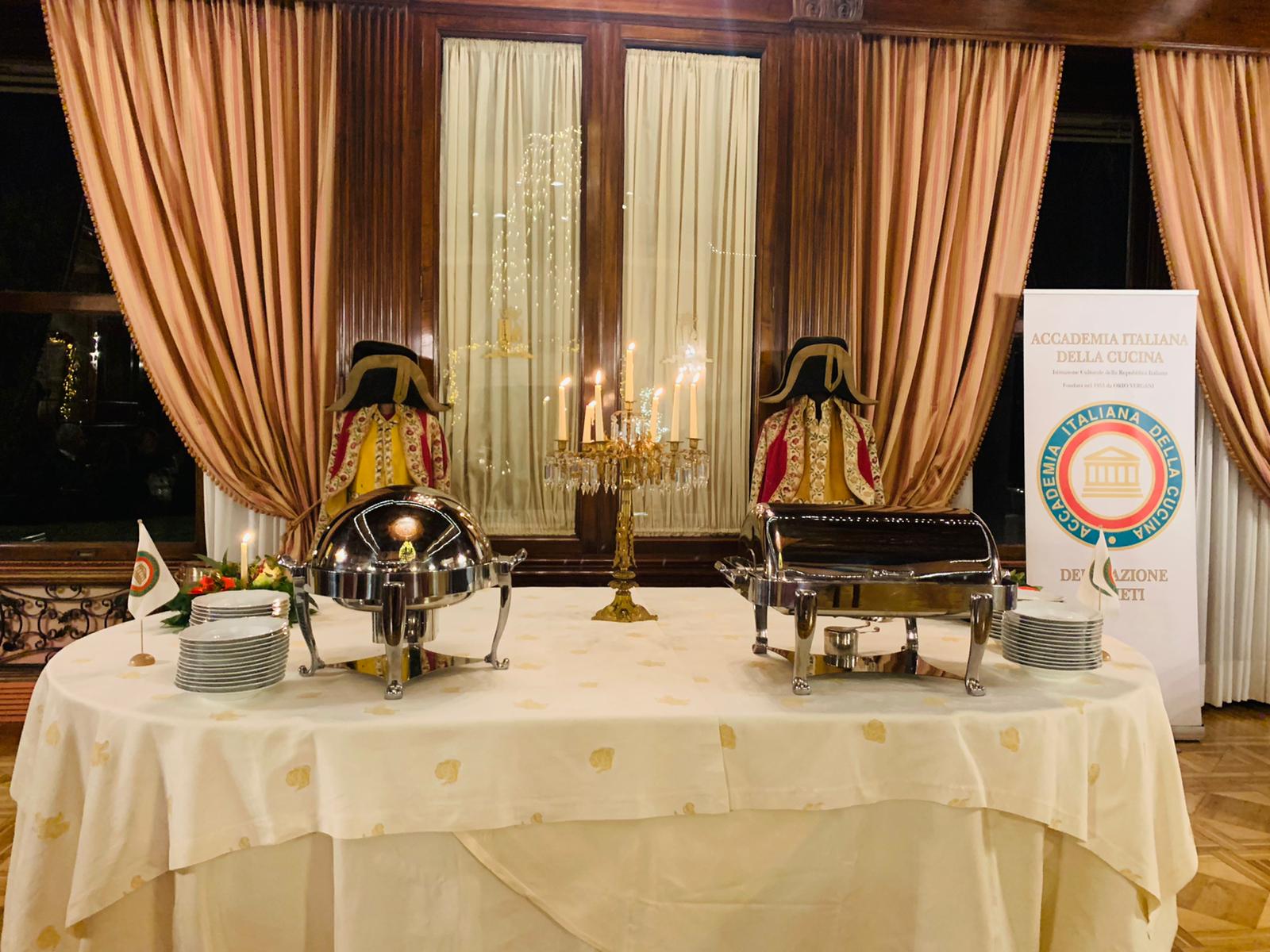 La Delegazione di Budapest quest'anno ha rinnovato la tradizione del “Gala degli Auguri 2021” presso il prestigioso Grand Hotel Royal Corinthia. Di risonanza nell’ambito delle festività natalizie a Budapest come preminente occasione di eleganza “all’italiana”, l’evento ha richiamato anche quest’anno una straordinaria partecipazione di Accademici e ospiti tra i quali S.E Manuel Jacoangeli Ambasciatore d’Italia e S.E Michael Blume Nunzio Apostolico. È stata questa la cornice nella quale, attraverso il tradizionale passaggio delle campana, Michele Fasciano ha assunto il ruolo di Delegato, seguendo nella guida della Delegazione Alberto Tibaldi che ha svolto il suo importante ruolo per più di undici anni coronati da molteplici attività di grande impatto e di indubbio valore (foto 1 da sinistra Tibaldi e Fasciano). Dopo i tradizionali saluti dell’Ambasciatore e l’apostolica benedizione impartita dal Nunzio, è stato ufficialmente introdotto il nuovo Accademico Simon Skottowe (foto 2 da sinistra: S.E. Ambasciatore Manuel Jacoangeli; Accademico Skottowe e Delegato Fasciano). La serata ha riscosso un enorme successo grazie anche alla collaborazione preziosa della Vice Delegata Maria Carmela Gaetani Aronica e del general manager dell’Hotel Jonathan Pace e del suo staff che, con assoluta disponibilità e dedizione, hanno dato un vero tocco di classe alla serata. Il menu presentato, raffinato e di alta cucina, si è articolato in diverse portate di pesce e di carne con una combinazione di sapori veramente sopraffina. Il tutto, abbinato all’eccellenza dei vini presentati ed al servizio impeccabile, ha reso il Gala degli Auguri un evento che ha suscitato il plauso incondizionato di tutti i presenti (foto 3 e 4).