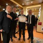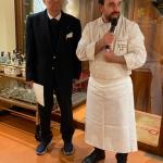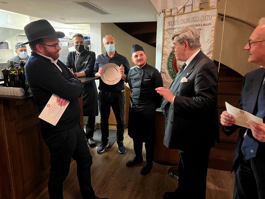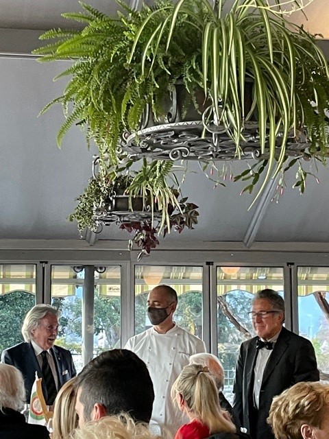 Si è tenuta al ristorante “Antica trattoria” di Alberto Alloro a Losanna, la quinta tappa del Giro d’Italia delle cucine tradizionali delle sue Regioni organizzata dalla Delegazione di Losanna-Vennes. Per la riunione conviviale degli auguri di fine anno è stata scelta la tradizione natalizia laziale, in particolare romana. Sul tema ha relazionato il Delegato Alessandro Caponi che ha ricordato ricette e prodotti tipici laziali. Sono stati serviti i cappelletti alla romana, realizzato seguendo la ricetta tradizionale dei laboratori di Mauro Traiteur, premio Massimo Alberini 2021, che ha fornito anche il pane e la focaccia, particolarmente fragranti. Ottima la pasta e ceci servita con un filo d’evo della Sabina; leggera e molto apprezzata la frittura; da sogno i cappelletti cotti a puntino in un brodo dal profumo straordinario; eccellente il cappone col suo ripieno. Molto apprezzati anche i vini in accompagnamento. Il servizio è stato rapido e sorridente, la critica brillante e simpaticissima, lungamente applaudita, davanti al gestore, alla brigata di cucina ed al servizio di sala, fieri del loro successo e felici del piacere che hanno preso nel preparare il menu concordato, come hanno tenuto a testimoniare ai presenti. Foto 1. Il momento della critica fatta dal Vice Delegato Renzo Baldino e dall’enologo Guillaume Pucci. Foto 2. La consegna del piatto d’argento al gestore Roberto Alloro.