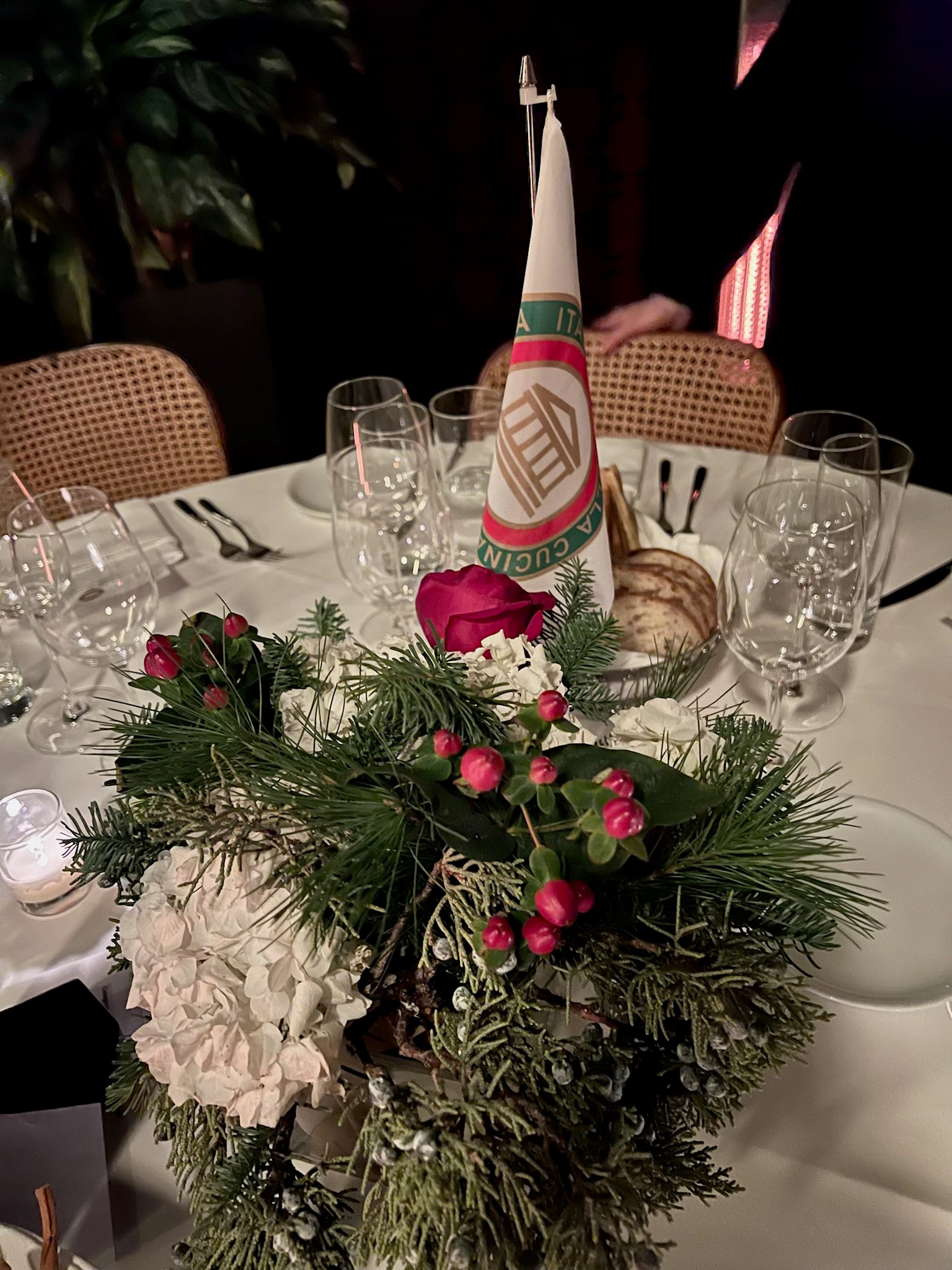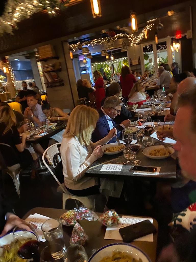 L'albero di Natale, le ghirlande alle pareti e le luci hanno accolto gli Accademici di Miami presso il ristorante Palat situato nell'area Buena Vista, già visitato e molto apprezzato dalla Delegazione. Molti gli amici intervenuti che hanno trovato accanto al piatto un sacchetto di dolci italiani tipici natalizi e la scheda della tombola. La cena preparata dallo chef Mimmo d'Amore si è basata su di un pairing menu con una scelta di ottimi vini molto graditi dagli Accademici. Una serata festosa e gioiosa che ha visto la partecipazione di ottanta commensali.
