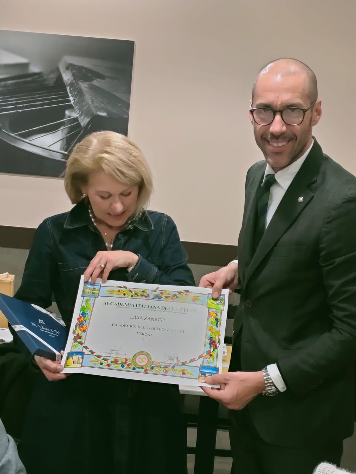 La riunione conviviale degli auguri della Delegazione di Verona è stata organizzata presso il ristorante La Cru di Romagnano di Grezzana (VR). Il Simposiarca Aldo Bulgarelli ha illustrato agli Accademici veronesi l'origine del villaggio di Romagnano, della Villa Maffei Medici-Balis Crema, del nome polisenso del ristorante (la riproduzione della Vera Cruz de Caravaca, le Cru come territorio, the crew come squadra), del poliedrico e raffinato menu, delle persone che l'hanno preparato e servito, con in testa il giovane chef Giacomo Sacchetto che vanta un’esperienza anche internazionale in ristoranti pluristellati. Grande brigata di cucina e di sala. L'orto biodinamico e bio-sinergico ha contribuito a fornire ortaggi freschissimi per piatti che hanno affascinato gli Accademici. Grande attenzione al territorio e alla sostenibilità.