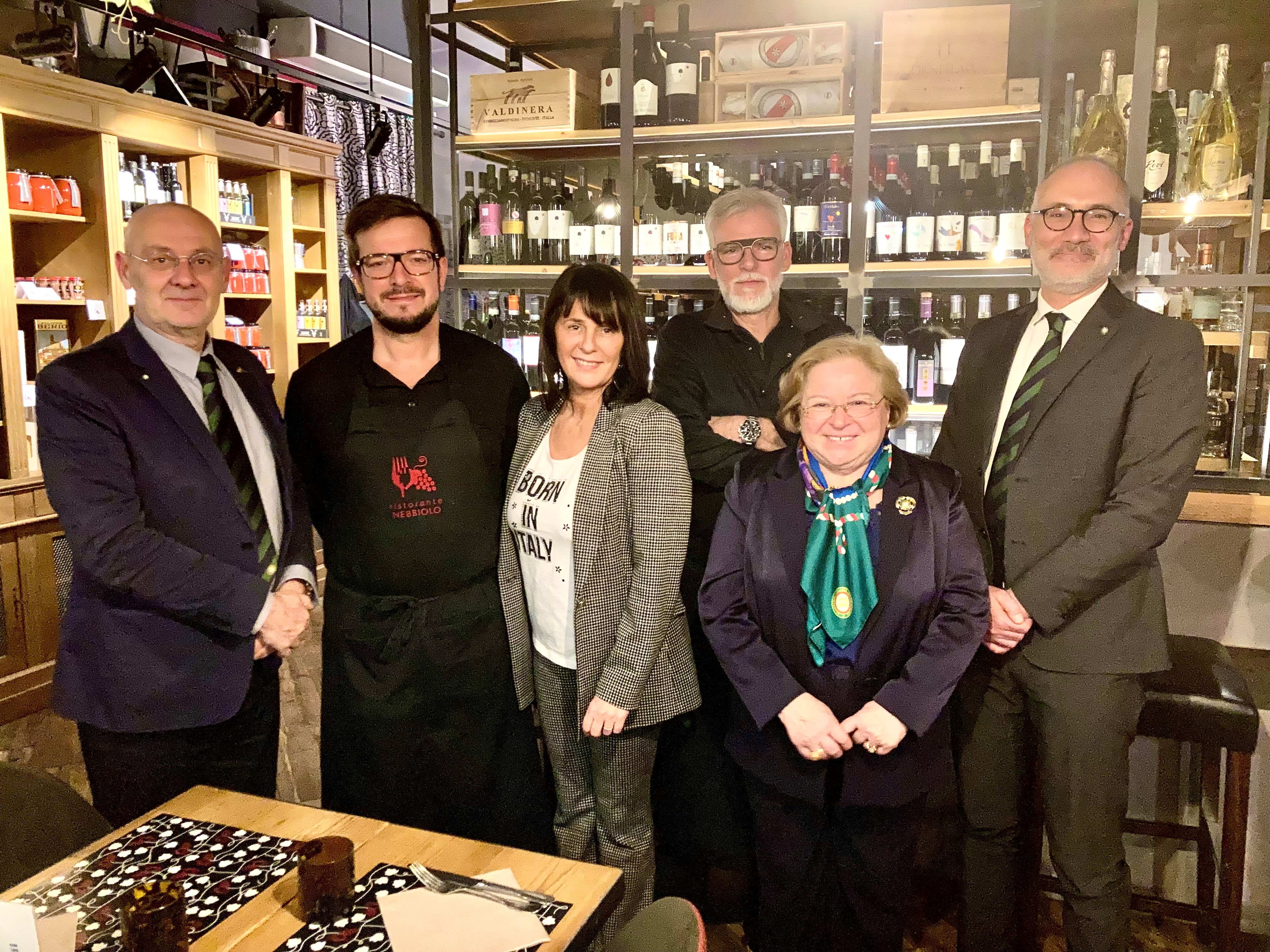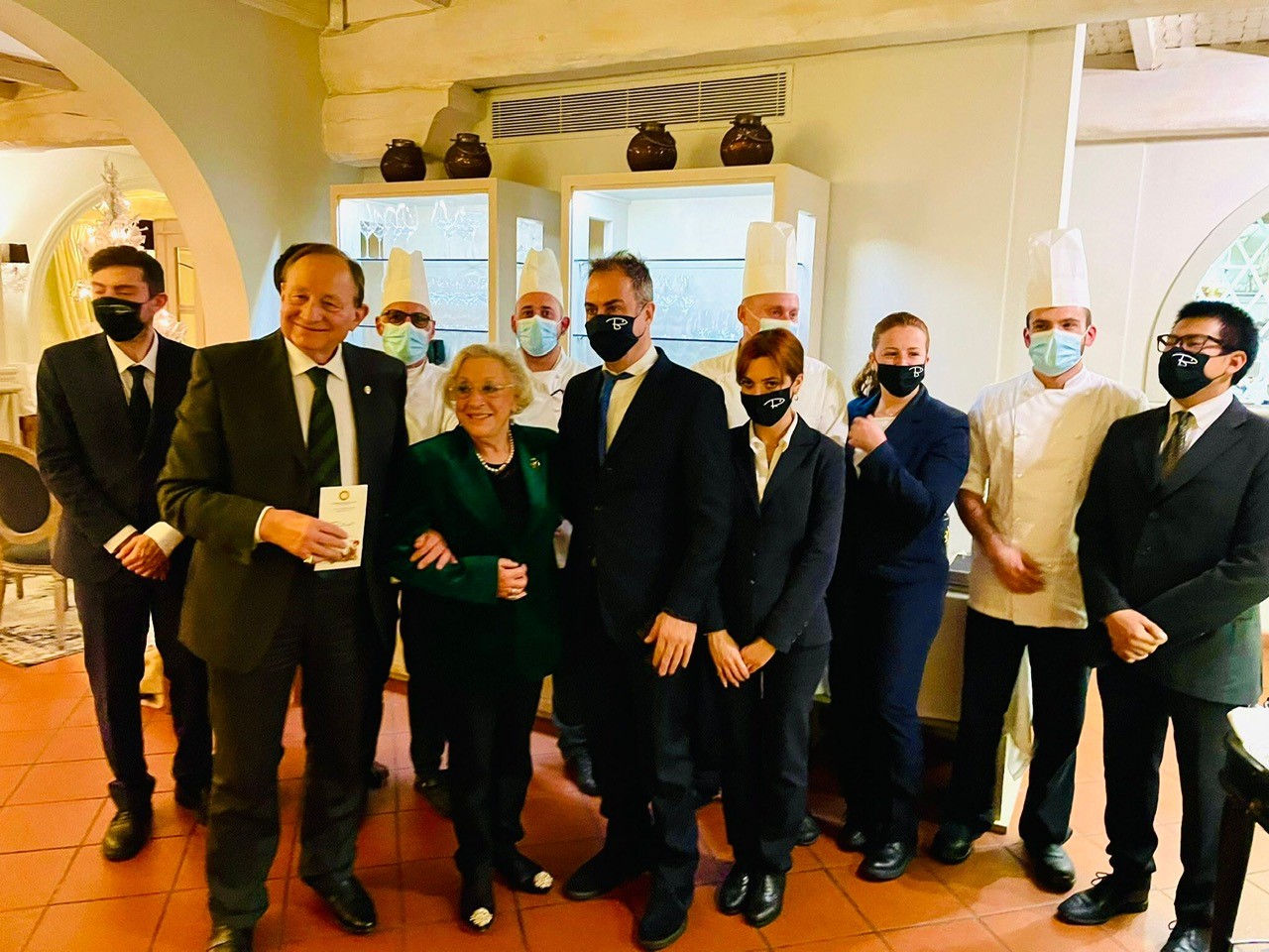 Prima riunione conviviale della Legazione di Strasburgo e Metz, istituita nel gennaio 2021, che ha scelto per la speciale occasione il ristorante “Nebbiolo” nel Comune di Peltre, contiguo a quello di Metz. Vi è stato un consenso generale, sia da parte degli Accademici sia degli ospiti, sull'eccellente qualità degli ingredienti e della loro preparazione e cottura. Il susseguirsi delle portate è parso tracciare un viaggio ideale dall'Europa settentrionale (antipasto a base di salmone) all'Italia del Nord (risotto di Vercelli, polenta), fino alla Sicilia (dolci a base di pistacchio di Bronte). Gli abbinamenti dei sapori di ogni singolo piatto sono stati audaci, forse talvolta non tipicamente italiani, ma, al tempo stesso, quasi sempre ottimamente riusciti. La scelta dei vini e l'abbinamento con i piatti è stata ritenuta perfetta. Ambiente e servizio meno soddisfacenti. Non si può definire il Nebbiolo di Peltre un ristorante tipicamente italiano ma un creativo laboratorio di sapori dove, utilizzando prodotti di qualità provenienti in buona parte dal nostro Paese, si elabora una riuscita sintesi fra la raffinata ricerca della cucina francese ed il gusto genuino di quella della Penisola. Foto 1. Da destra: Legato Emilio Lolli, l’Accademica Maria Sarnelli in Triacca, lo chef Philippe De Cuyper e la moglie Céline Rossi (titolari del “Nebbiolo”), il sommelier Philippe Aubert e l’Accademico Philippe Brunella. Foto 2. Da destra: il Legato Emilio Lolli, l’Accademica Maria Sarnelli in Triacca e l’Accademico Philippe Brunella.