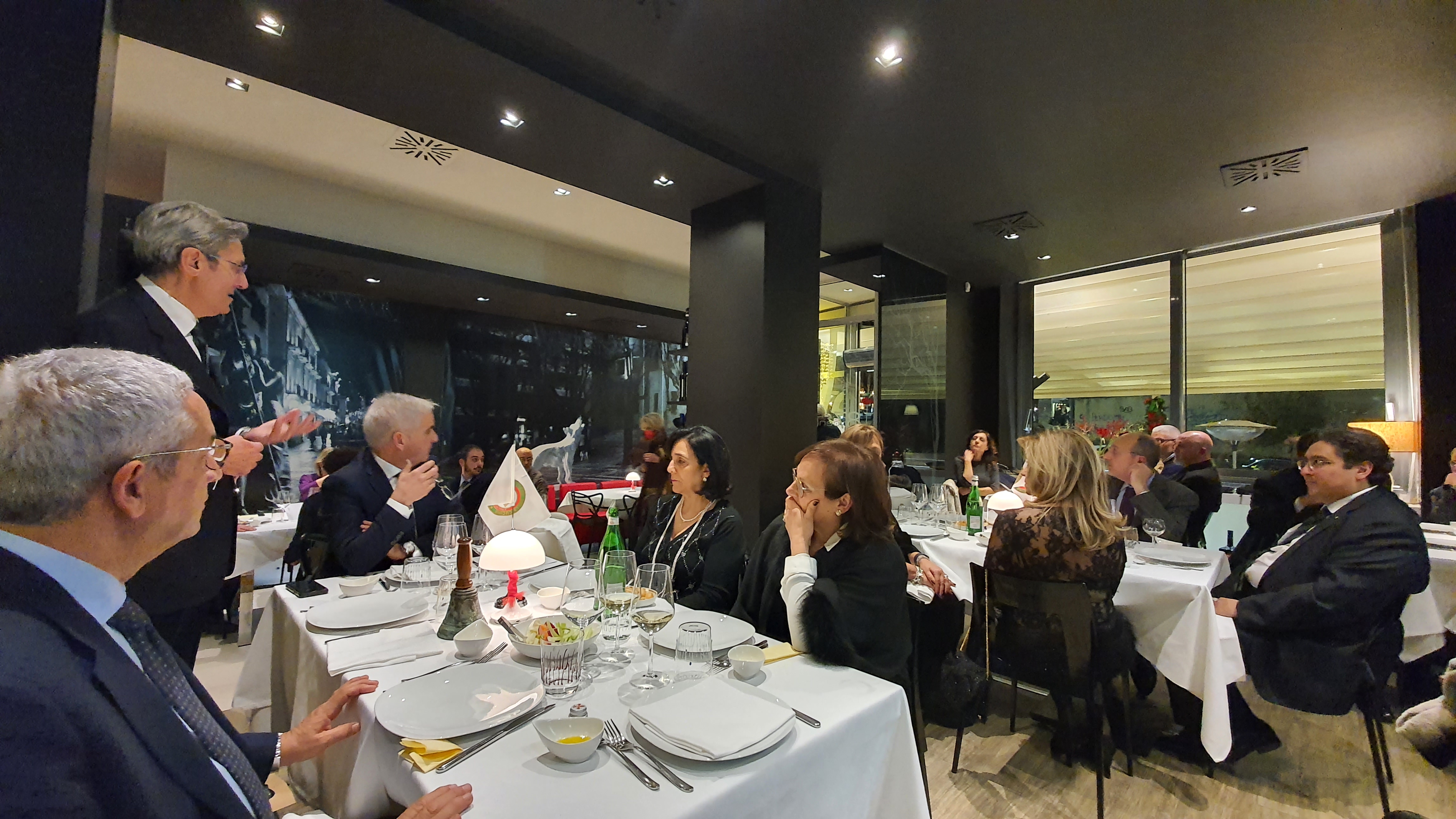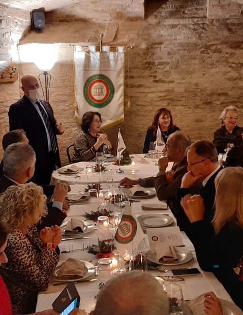 Pochi giorni prima delle feste natalizie, le due Delegazioni di New York e New York Soho si sono ritrovate per una elegante cena presso il noto ristorante “Il Gattopardo." I due Delegati, Roberta Marini de Plano e Berardo Paradiso (entrambi in foto 1 in piedi), hanno dato un caloroso benvenuto agli Accademici e loro ospiti, alla Vice Console Irene Asquini, al nuovo rappresentante della Banca D’Italia a New York Carmine Porello e a Gabriella Lorenzotti, moglie di Guido Lorenzotti che ha guidato per venti anni la Delegazione di New York poco dopo la fondazione nel 1959. Una riunione conviviale molto partecipata, con sessanta ospiti riuniti nella sala privata, un bellissimo e storico atrio noto come il luogo dove è stato ideato il MoMA. Dopo il brindisi augurale, è stato servito un menu con piatti tipici natalizi: insalata di baccalà con olive Castelvetrano e giardiniera, cavatelli ai frutti di mare, brasato di vitello al barolo e, per concludere, panettone.