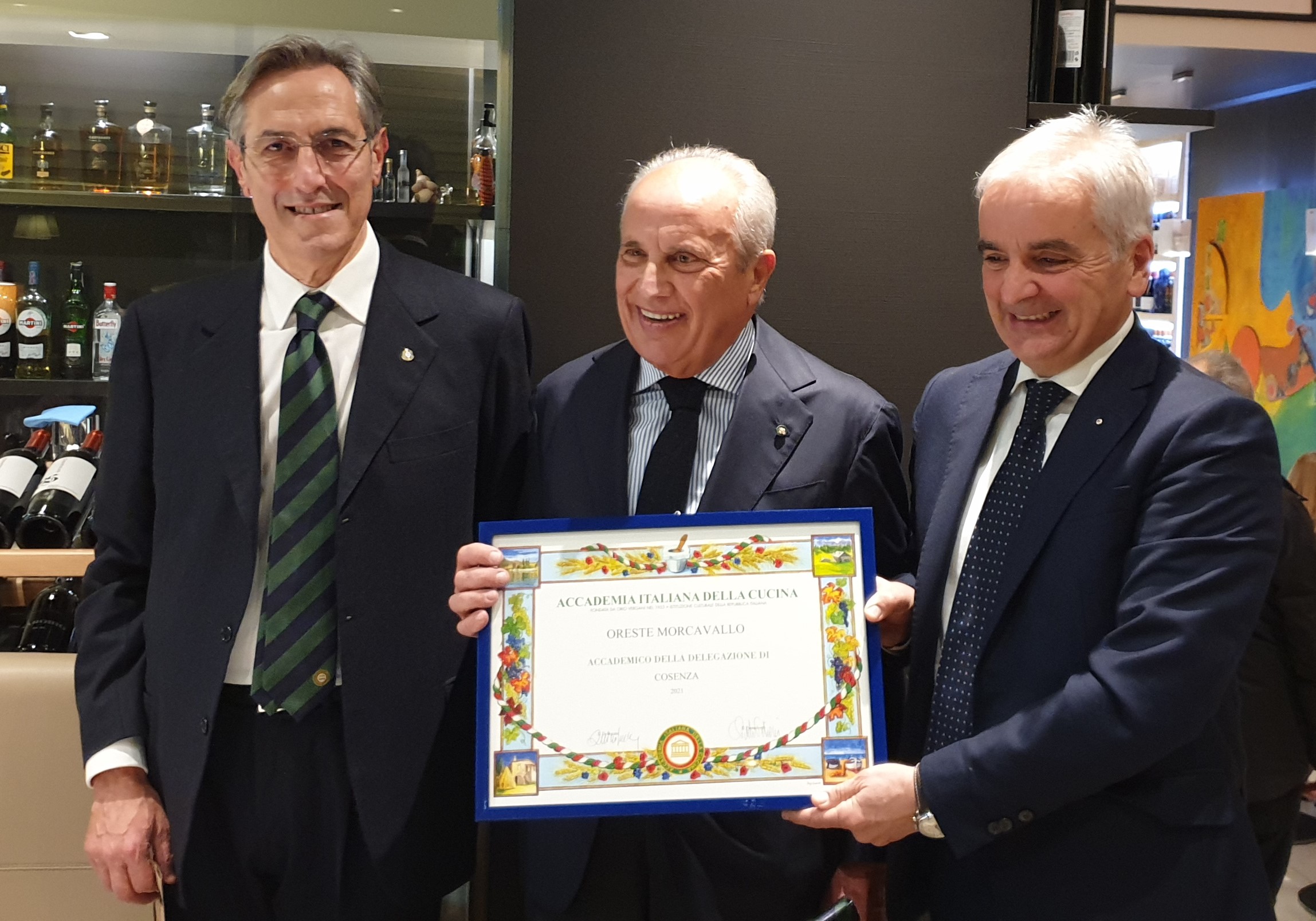 L'avvicinarsi del Natale, che rappresenta da sempre la festa delle feste, ha offerto l'occasione per riprendere l'annuale tradizione della convivialità accademica: circostanza privilegiata per condividere affetti e sentimenti di stima, scambiarsi auguri ed auspici per l'anno che verrà (foto 1). Lo chef Davide Forgione del ristorante 87Cento di Cosenza ha interpretato le tradizioni della vigilia di Natale con estro, equilibrio e mano felice con un menu esclusivo studiato per l'occasione. Il tutto molto apprezzato dagli Accademici presenti in numero rilevante (foto 2). Simposiarca, il Consultore Francesco Amato che ha ripercorso usanze e riti del periodo. Consegnati gli attestati di appartenenza ai neo Accademici Oreste Morcavallo e Gianpaola Savino in un clima di amicizia calorosa e gioviale (foto 3 e 4).