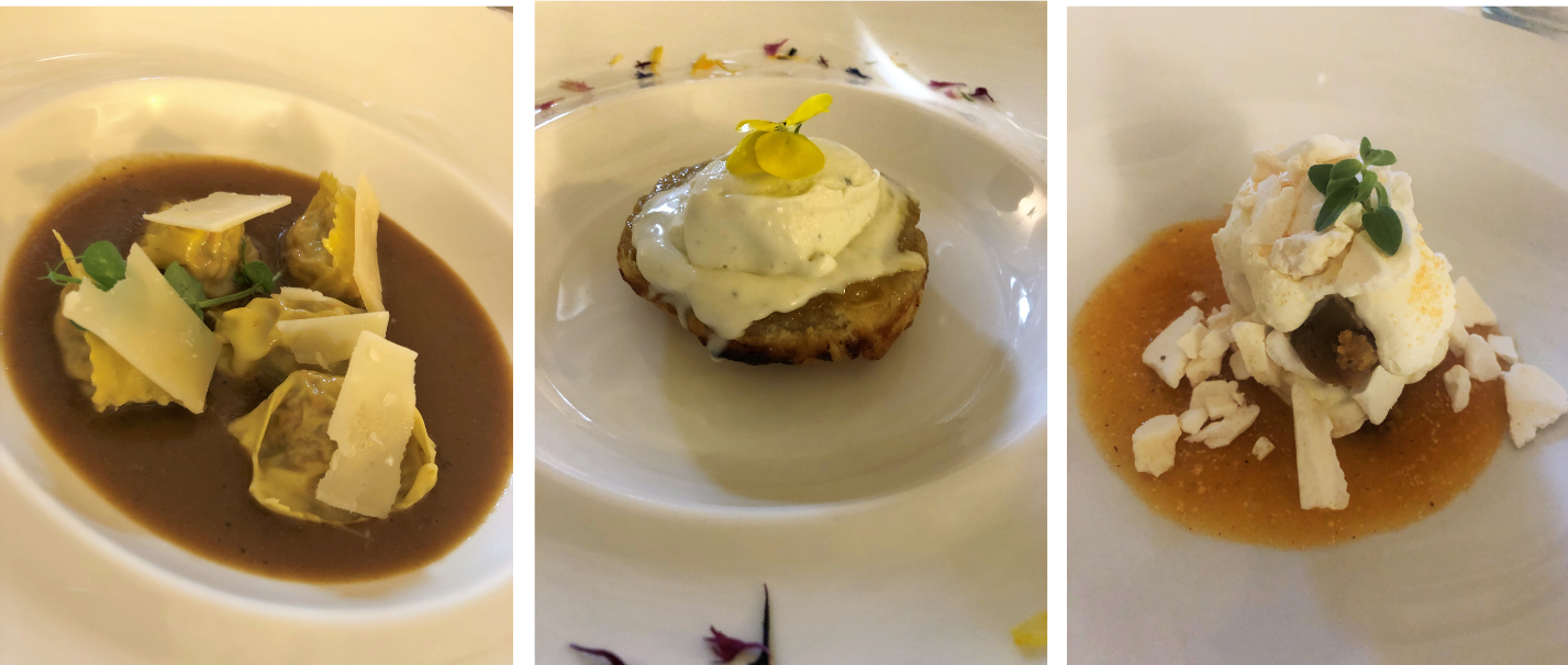 Nella meravigliosa cornice di uno dei ristoranti più rappresentativi della Versilia, il “Bistrot”, si è svolta la riunione conviviale degli auguri della Delegazione della Versilia Storica. Il menu proposto per la serata da Andrea Mattei, executive chef dei quattro ristoranti della famiglia Vaiani, ha particolarmente colpito per la scelta di piatti preparati con prodotti biologici, stagionali e a km zero della fattoria padronale situata in Lucchesia. Alla serata era presente il Presidente Paolo Petroni con la signora Roberta e il Sindaco di Forte dei Marmi, Accademico Bruno Murzi. Dopo il saluto iniziale ai presenti da parte delle Delegata Anna Ricci, la serata si è svolta in modo ineccepibile con i complimenti del Presidente Petroni, a fine serata, rivolti per la loro professionalità sia alla brigata di cucina sia al personale di sala. La serata ha ottenuto un alto gradimento da parte di tutti i presenti per il cibo e per la location. Foto 1. Presidente Petroni e Delegata Ricci. Foto 2. Il Tavolo del Presidente con il Sindaco Murzi. Foto 3. Foto di gruppo con il personale. Foto 4. Menu e alcuni piatti.