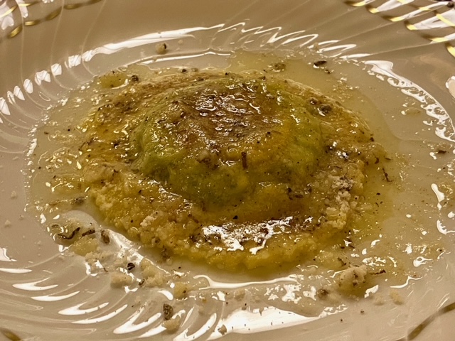 La ripresa dell'attività accademica per il nuovo anno è avvenuta nell’accogliente ristorante La Bottega situato nel centro storico di Dozza, uno dei borghi più belli d'Italia. In avvio di riunione, dopo una breve verifica sull'operato dello scorso anno e la presentazione del programma per i prossimi mesi, i presenti hanno accolto con un convinto plauso la neo Accademica Sabina Ferlini. La cucina, guidata da Pierpaolo Nanni, ha risposto alle aspettative degli Accademici che hanno apprezzato in particolare i tortelloni ripieni di carbonara e la guancetta di maialino. Servizio condotto in modo eccellente. Foto 1. La nuova associata Sabina Ferlini con il Delegato Antonio Gaddoni e gli Accademici presentatori. Foto 2. Accademici a tavola. Foto 3 Il Delegato con la brigata di cucina. Foto 4. I tortelloni ripieni di carbonara.