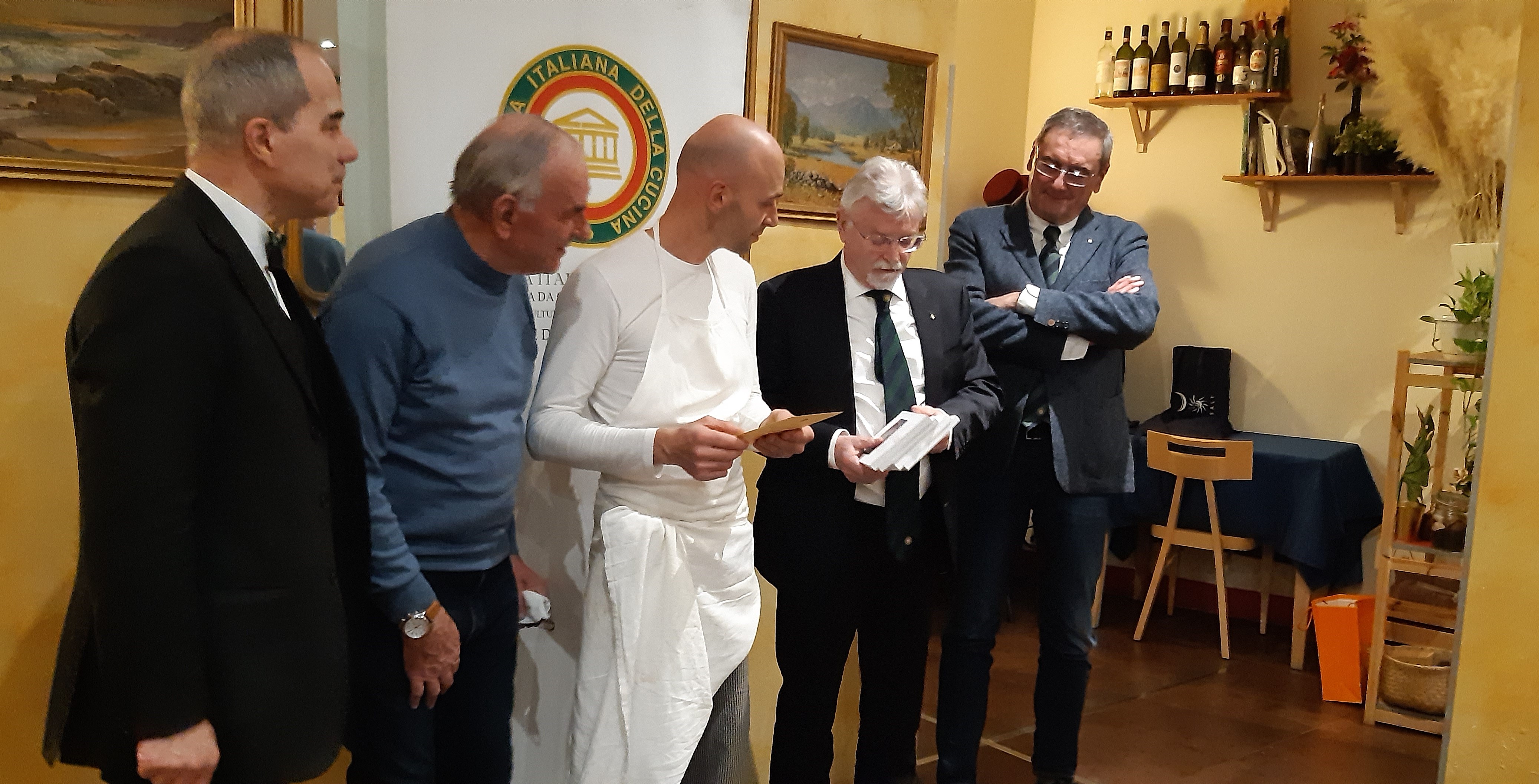 La Delegazione di Sabbioneta-Terre Destra Oglio ha inteso dare particolare risalto alla riunione conviviale di dicembre che tradizionalmente rappresenta l’occasione per lo scambio di doni e auguri di Natale. L’evento si è tenuto presso il Ristorante di Villa Cantoni Marca, una residenza storica già sede di albergo e annesso ristorante, ristrutturato di recente. In questa location molto piacevole il giovane chef Francesco Ricciuto e la compagna Miriam, maître di sala, hanno accolto entusiasti la prima visita dell’Accademia Italiana della Cucina. Oltre alla presenza di tutti gli Accademici e di gran parte dei famigliari, la serata ha visto la partecipazione di numerosi ospiti. Si è voluto infatti celebrare in un’unica occasione i destinatari dei vari premi assegnati nel 2021: Premio “Massimo Alberini” a Massimo Danini di “Danini Carni” per l’eccellenza e la costanza dei prodotti; Premio “Dino Villani” a Mario Valli di “GAM S.r.l.” per la Mostarda Viadanese; Premio “Dino Villani” a Ernesto Grazzi di “Grazzi Salumi” per i Ciccioli frolli. Altro appuntamento importante della serata è stato rappresentato dal dono, alle biblioteche civiche, del volume “Storia della cucina italiana a fumetti” edito dall’Accademia. I sindaci dei rispettivi Comuni di Sabbioneta, Commessaggio e Viadana hanno aderito con entusiasmo all’iniziativa di cui hanno condiviso la finalità culturale. Le biblioteche degli altri Comuni del territorio della Delegazione saranno raggiunte prossimamente. La qualità del menu, la curiosità, l’interesse per finalità e scopi dell’Accademia nonché la convivialità dei presenti hanno dato sostanza ad una iniziativa ben riuscita.