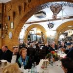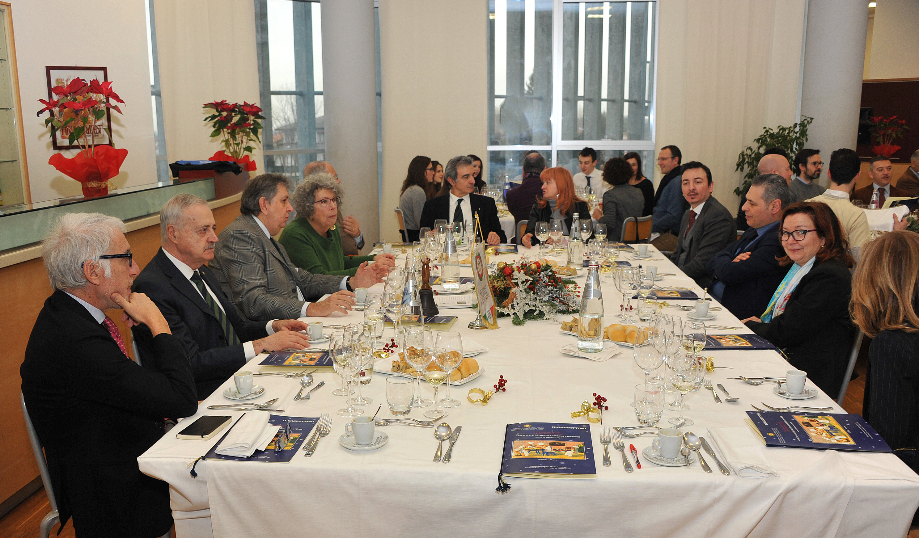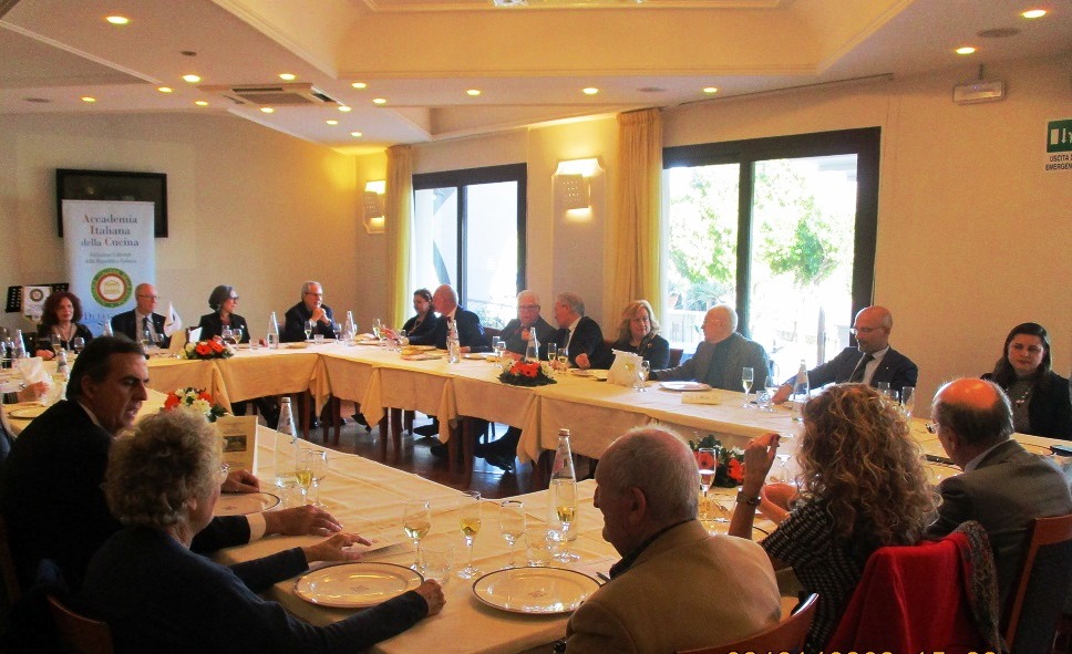 Riunione conviviale degli auguri per le feste imminenti molto sentita e partecipata da parte degli Accademici di Cosenza (foto 1) che si sono riuniti presso il ristorante "La Tavernetta" di Camigliatello Silano. La serata è stata concepita insieme al giovane chef Emanuele Lecce (foto 2), tra i piatti della tradizione della sera della vigilia che guardano al pesce (foto 3) e quelli del pranzo di Natale dedicati alla carne (foto 4), con la conclusione della varietà dei dolci del periodo. La relazione del Simposiarca Eugenio Rogano ha contestualizzato la circostanza con aneddoti e citazioni colte; l'accompagnamento di un pianoforte, i cori natalizi e un bellissimo caminetto hanno reso l'atmosfera particolarmente coinvolgente.