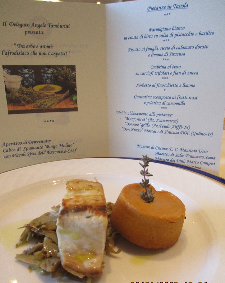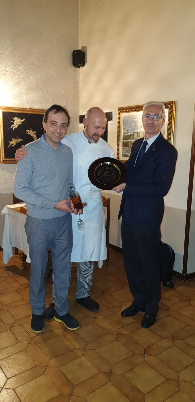La Delegazione di Messina ha visitato il ristorante “La Tonnara”, attivo da molti anni, con una vasta partecipazione (foto 1). L’entusiasmo dello chef-patron gli ha meritato la consegna del guidoncino (foto 2) e una valutazione complessivamente positiva specialmente per l’antipasto.