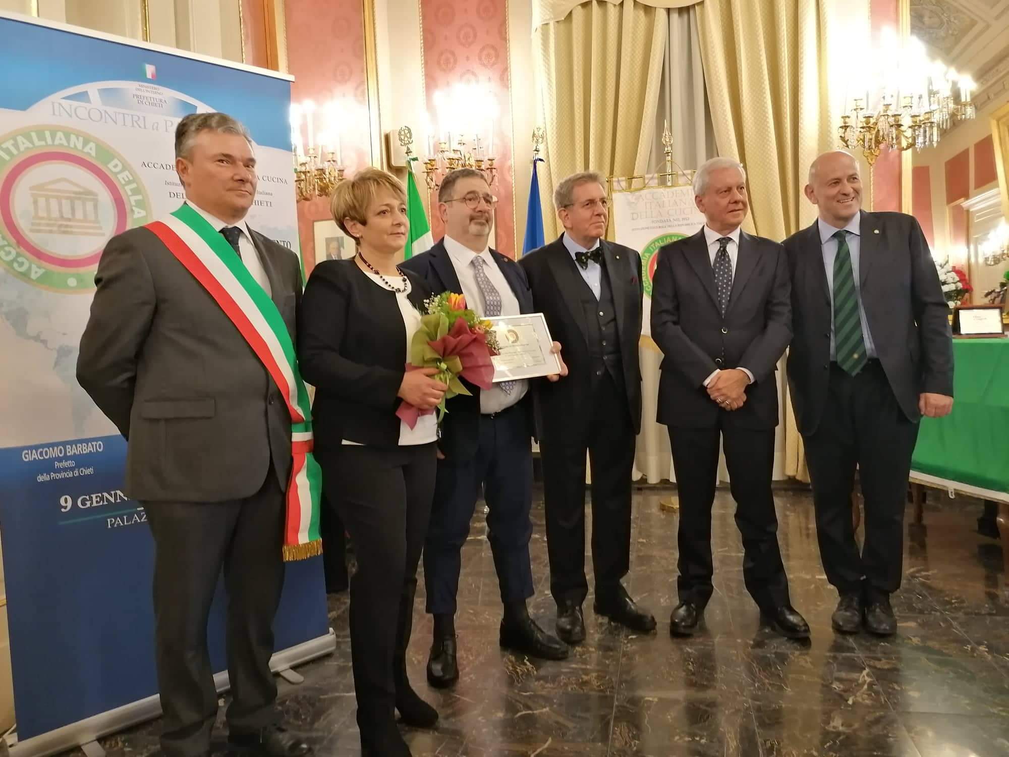 Il 9 gennaio 2020, nel Salone di Rappresentanza di Palazzo del Governo di Chieti, si è svolta la cerimonia di conferimento dei premi dell’Accademia Italiana della Cucina. Alla cerimonia hanno partecipato il Prefetto di Chieti, dott. Giacomo Barbato, il Delegato di Chieti Nicola D’Auria e il Consigliere di Presidenza Mimmo D’Alessio. Alla “Natural Industria di Bucchianico” e a “I segreti di Donna Anna” di Lama dei Peligni è stato conferito il Premio “Dino Villani”; alla storica Pasticceria “D’Orazio” di Chieti il Premio “Massimo Alberini” e il “Diploma di Buona Cucina” al Ristorante “Sant’Eufemia” di Fara Filiorum Petri.