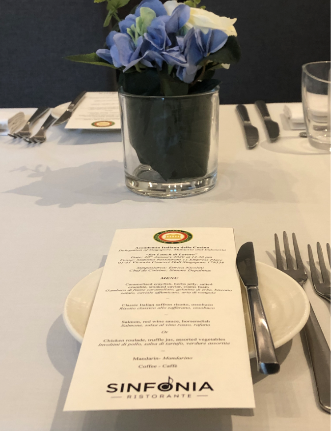 La prima riunione conviviale del 2020, riservata ai soli Accademici, si è tenuta presso il ristorante Sinfonia di Singapore sul tema “Set lunch di lavoro”. Un’occasione quindi non solo di convivialità ma anche di riflessione sul lavoro svolto nel passato decennio e, soprattutto, sulla futura attività della Delegazione che conta 43 Accademici. Il Delegato Giorgio Maria Rosica ha presentato la nuova Consulta composta da: Alberto Martinelli Vice Delegato, Chiara Randi Consultore-Segretario, Enrica Nicolini Consultore-Tesoriere, Maurizia Debiaggi, Renato Sirtori, Giuseppe Scaccianoce e Alessandra Uccello (Consultori). Presenti all’incontro anche il Legato di Giacarta Raffaele Quarto che ha condiviso la sua esperienza accademica in Indonesia e proposto iniziative di collaborazione e S.E. Raffaele Langella, Ambasciatore Italiano a Singapore e Accademico onorario i cui interventi hanno offerto interessanti spunti e opportunità per la Delegazione. Il menu, studiato dalla Simposiarca Enrica Nicolini e dallo chef Simone Depalmas, è stato indovinato e molto apprezzato da tutti gli Accademici.