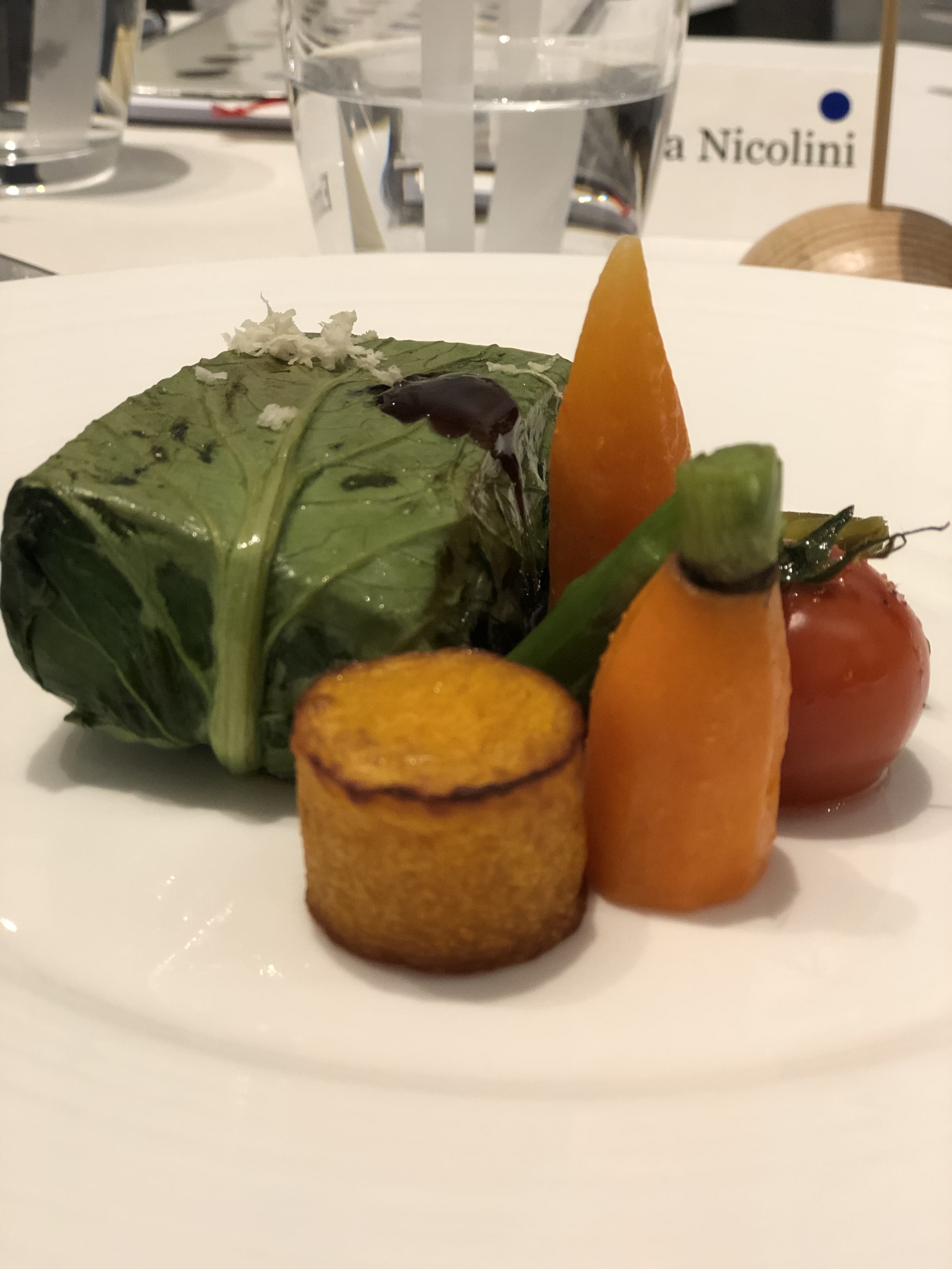 23esima edizione de "Il Piatto del Natale", storico concorso riservato agli isitituti albergheri organizzato dal Gazzettino, dalla Delegazione di Venezia Mestre quest’anno insieme alla Delegazione di Treviso. Si è tenuta il 18 gennaio nelle sale dell’Istituto Alberghiero "Alberini" a Lancenigo di Villorba (Tv) la conviviale di gala in cui sono stati premiati gli istituti finalisti che hanno convinto la giuria tecnica, composta da importanti chef e ristoratori e da Accademici, con piatti originali, saporiti, serviti e accompagnati con cura. Il Beltrame di Vittorio Veneto (Tv) ha vinto l’edizione 2019 con “Il piatto di Natale nel viaggio del gusto”: tortelli di pasta fresca ripieni di ossada (parti gelatinose delle cartilagini, polpa e ritagli di carne), in foto 1. Foto 2. La sala dell'evento conviviale. Foto 3. Il tavolo con il Delegato di Venezia Mestre Franco Zorzet, la Delegata di Treviso Teresa Perissinotto, Roberto Robazza DCST Veneto. Foto 4. I vincitori.