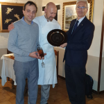 L'incontro conviviale della Delegazione del Principato di Monaco del mese di gennaio è stato dedicato alla cucina del Ponente ligure, secondo l'interpretazione dello chef Jean-Pierre Novembre del ristorante "Chez Louis" di Bordighera. La serata si è svolta presso la Société Nautique di Monaco. In foto, il Delegato Luciano Garzelli consegna il piatto silver dell'Accademia allo chef Novembre per le proposte gastronomiche della serata, risultato di un attento studio e di una riuscita sperimentazione, e per la sintonia con lo staff di cucina da lui guidato.