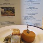 La Delegazione del Mugello, in collaborazione con il Rotary Club Mugello, ha organizzato la riunione conviviale degli auguri sul tema "Sinfonie di gusti" nei locali della Fattoria Il Palagio (Scarperia). Per l'occasione il menu è stato composto con le ricette di alcuni piatti amati dai tre grandi compositori italiani Verdi, Rossini e Puccini. Ogni piatto è stato introdotto da suggestive arie tratte da alcune celebri opere dei grandi Maestri, eseguite dal Quintetto "Camerata de' Bardi" con due voci soliste, in un emozionante alternarsi di musica e cibo. Foto 1. La Delegata Monica Sforzini e la Presidente Rotary Sabrina Landi Malavolti. Foto 2. La Delegata con la Presidente Rotary, la brigata di cucina e il personale di sala del Palagio. Foto 3. La Camerata de' Bardi. Foto 4. Il menu.