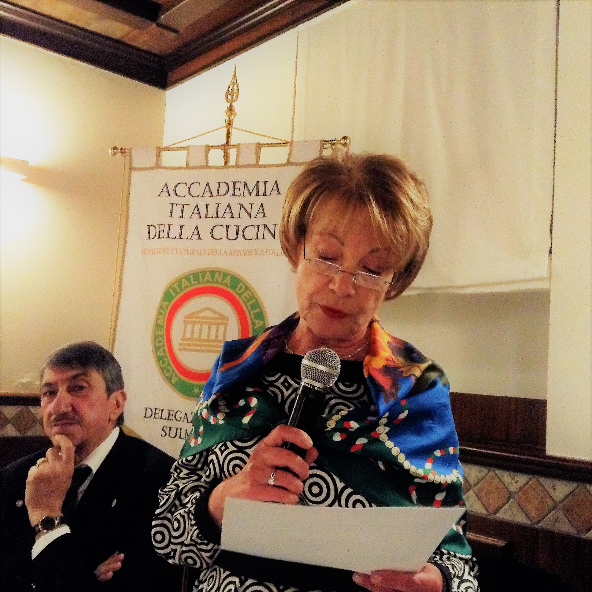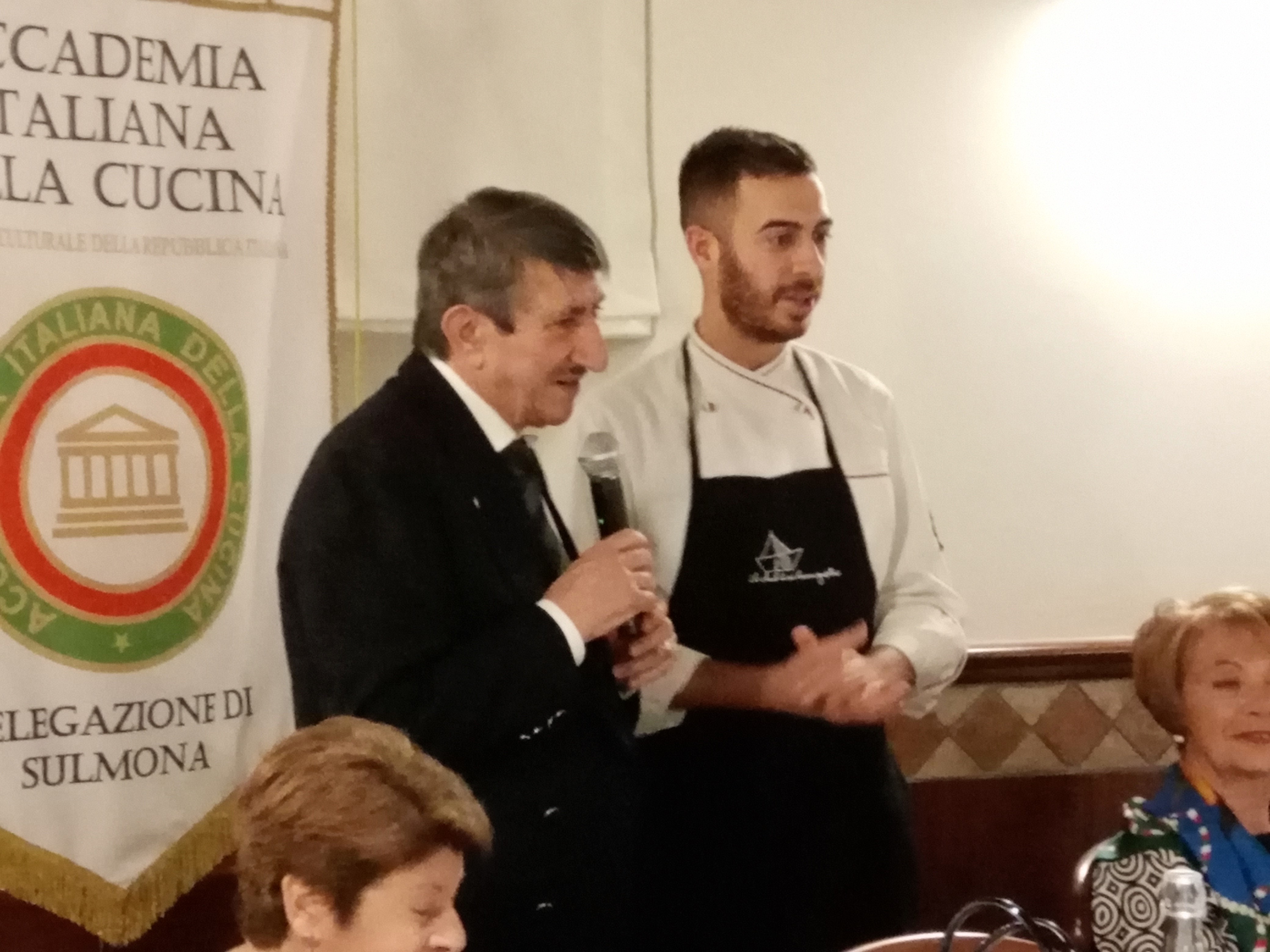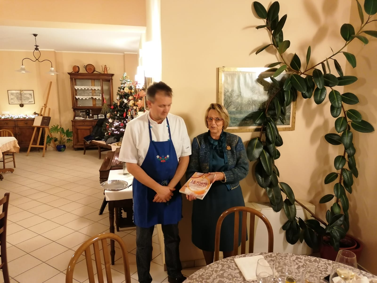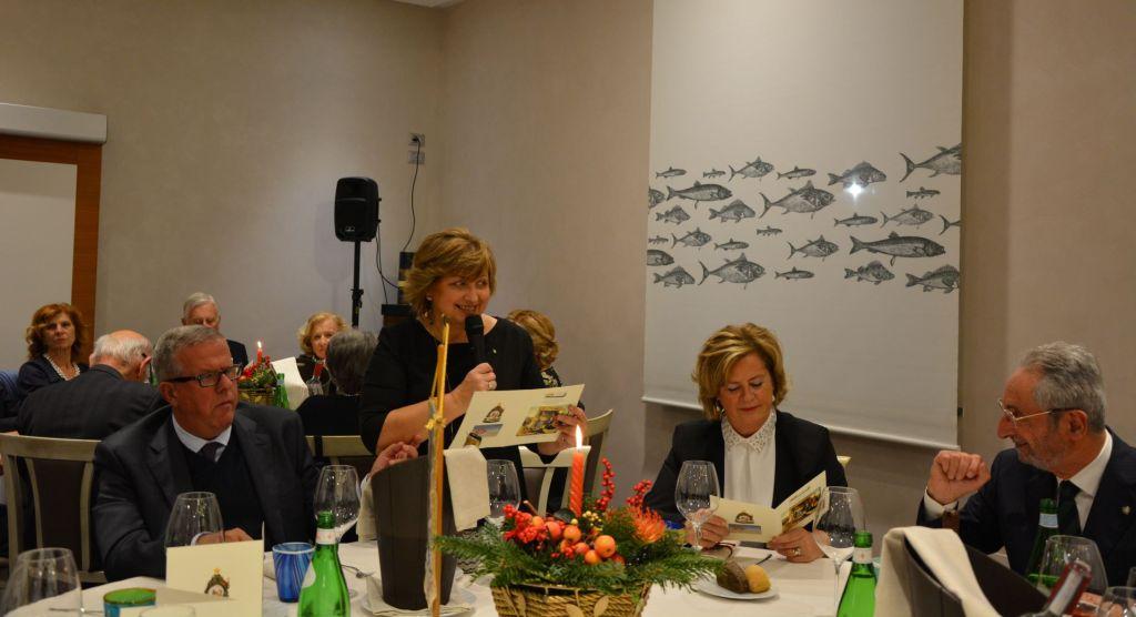 Per la cena degli auguri, la Delegazione di Sulmona guidata da Giovanni Maria D'Amario, si è ritrovata al "Club dei Buongustai" di Sulmona. Foto 1. Saluti del Delegato. Foto 2. La Vice Delegata Maria Carmela Petrucci espone la sua relazione. Foto 3. Il Delegato saluta la brigata di cucina. Foto 4. Un piatto della serata.