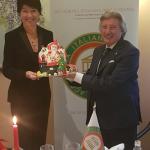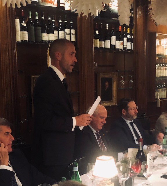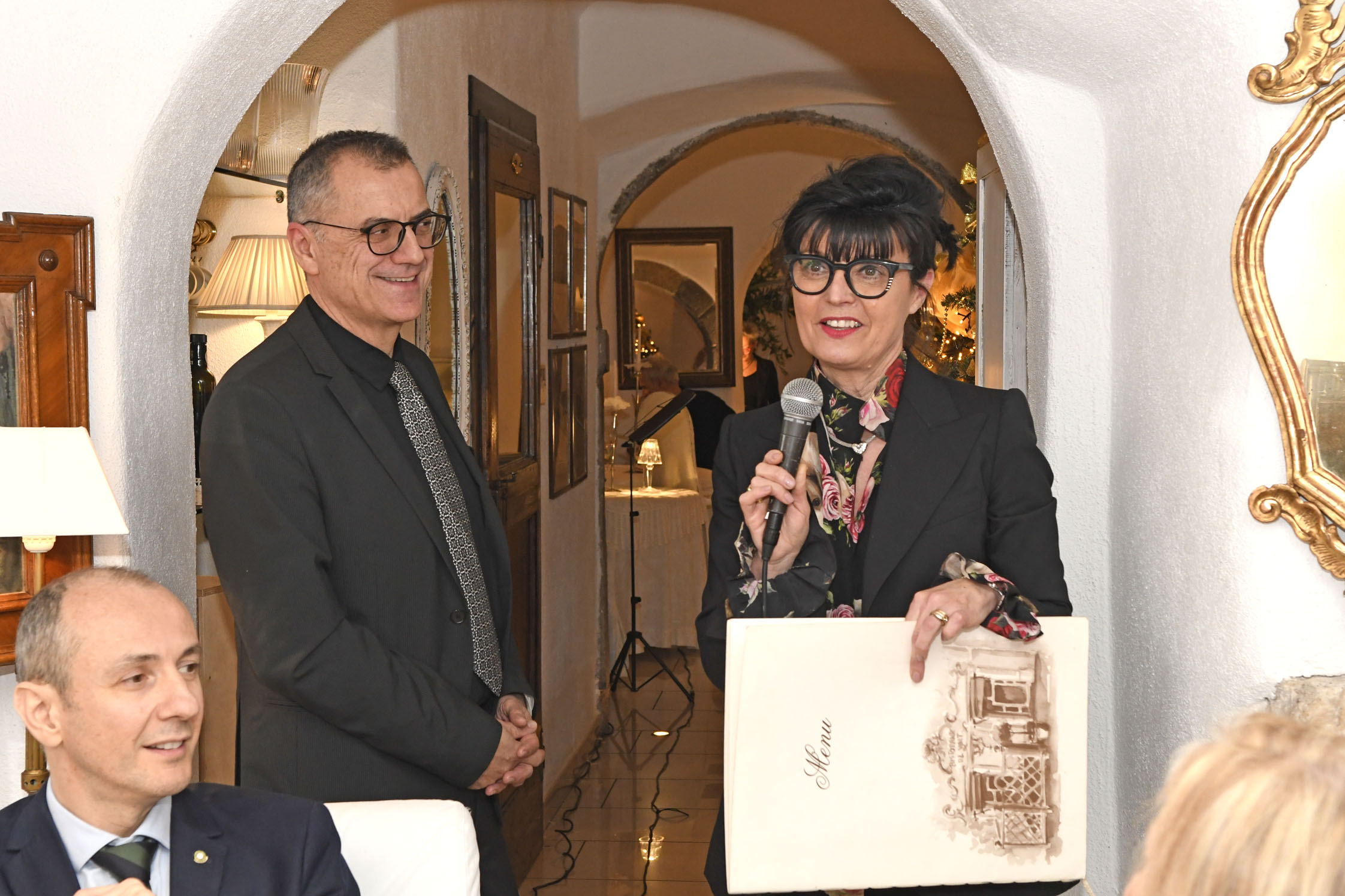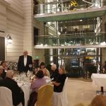 Anche quest'anno la Delegazione di Budapest ha organizzato il “Gala degli Auguri” presso il prestigioso Grand Hotel Royal Corinthia. Oltre alla presenza di numerosi Accademici e ospiti, hanno partecipato S.E. Massimo Rustico Ambasciatore d’Italia accompagnato dalla consorte Monica che ha rimarcato l’importanza della presenza dell’Accademia nel contesto ungherese, S.E. Pacsay Orsolya Segretario di Stato agli Esteri del governo ungherese, S.E. Blume Michael Nunzio apostolico, S.E. Samia Ilhem Ammar Ambasciatore di Tunisia (Accademica onoraria), nonché l'Accademico onorario S.E. Alberto Bottari de Castello Nunzio apostolico che ha impartito la sua apostolica benedizione. Durante la serata sono stati ufficialmente introdotti due nuovi Accademici: Eva Maria Gemné Merenyi e Omar Balducci (foto 1). Il menu di pesce e di carne (foto 4), molto raffinato, l’eccellenza nella preparazione e presentazione dei piatti, i vini abbinati e l’efficiente servizio sono stati un degno coronamento all'ottima riuscita della serata, conclusasi in un clima di grande allegria e amicizia. Foto 2. il Delegato Alberto Tibaldi. Foto 3. Accademici e ospiti.