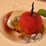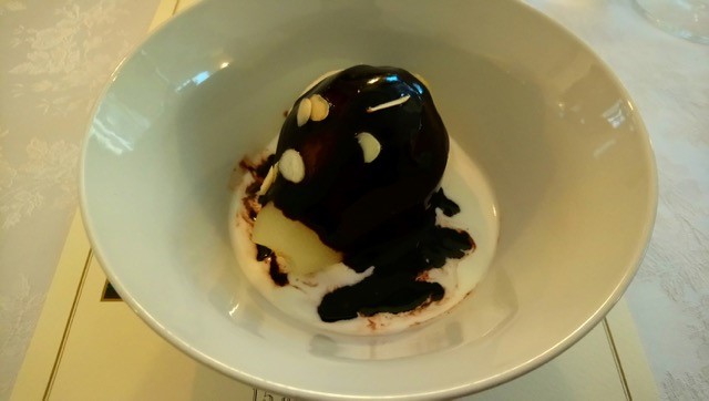 Pranzo di Natale della Delegazione di Novara al ristorante Arianna di Cavaglietto, ispirato ai menu degli anni ’60, anno di nascita della Delegazione. Grande partecipazione di Accademici, legati da sincera amicizia. Presente la Direttrice del Centro Studi Territoriale Piemonte Elisabetta Cocito omaggiata con un panettone artistico di buon augurio. Lo chef Pier Giuseppe Viazzi con il Delegato Piero Spaini. 2. Elisabetta Cocito riceve il panettone artistico degli auguri. 3.Il menu anni ’60, in francese come allora. 4. La pera “ Belle Helene “.