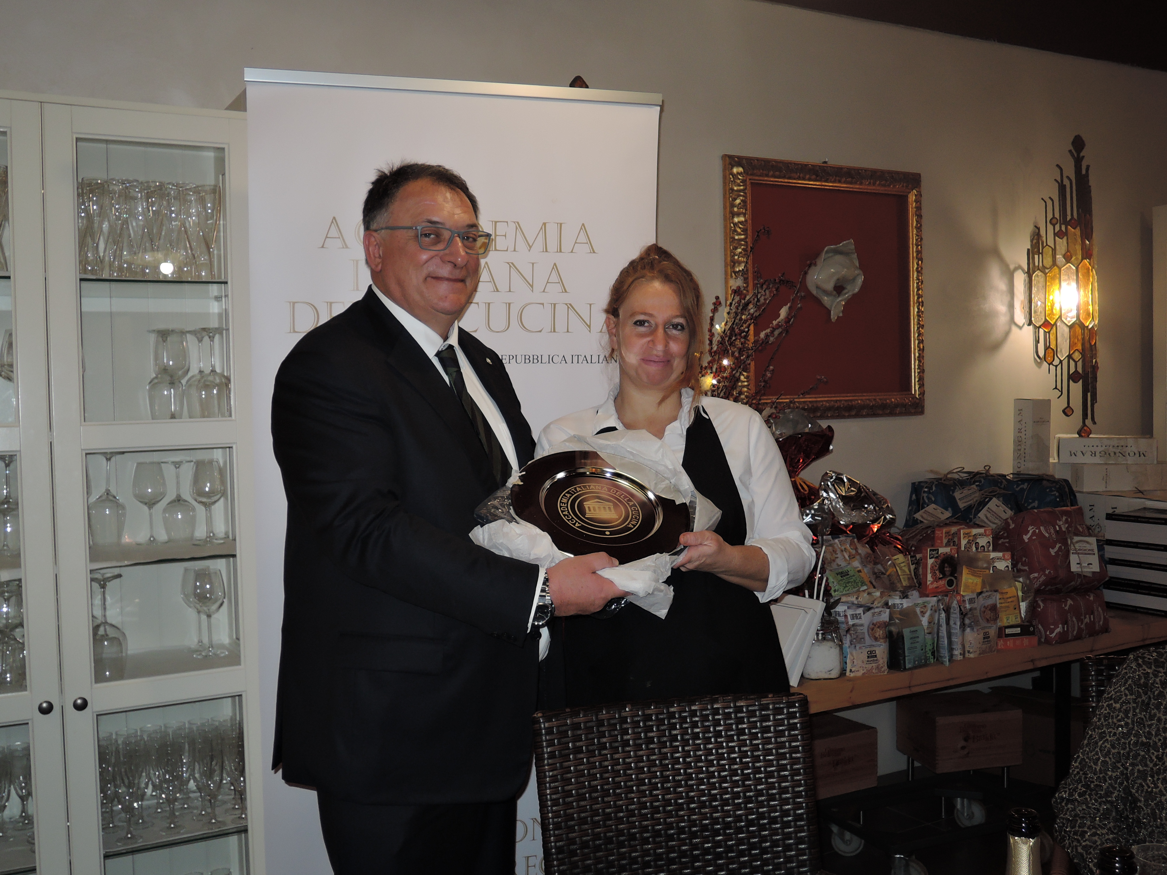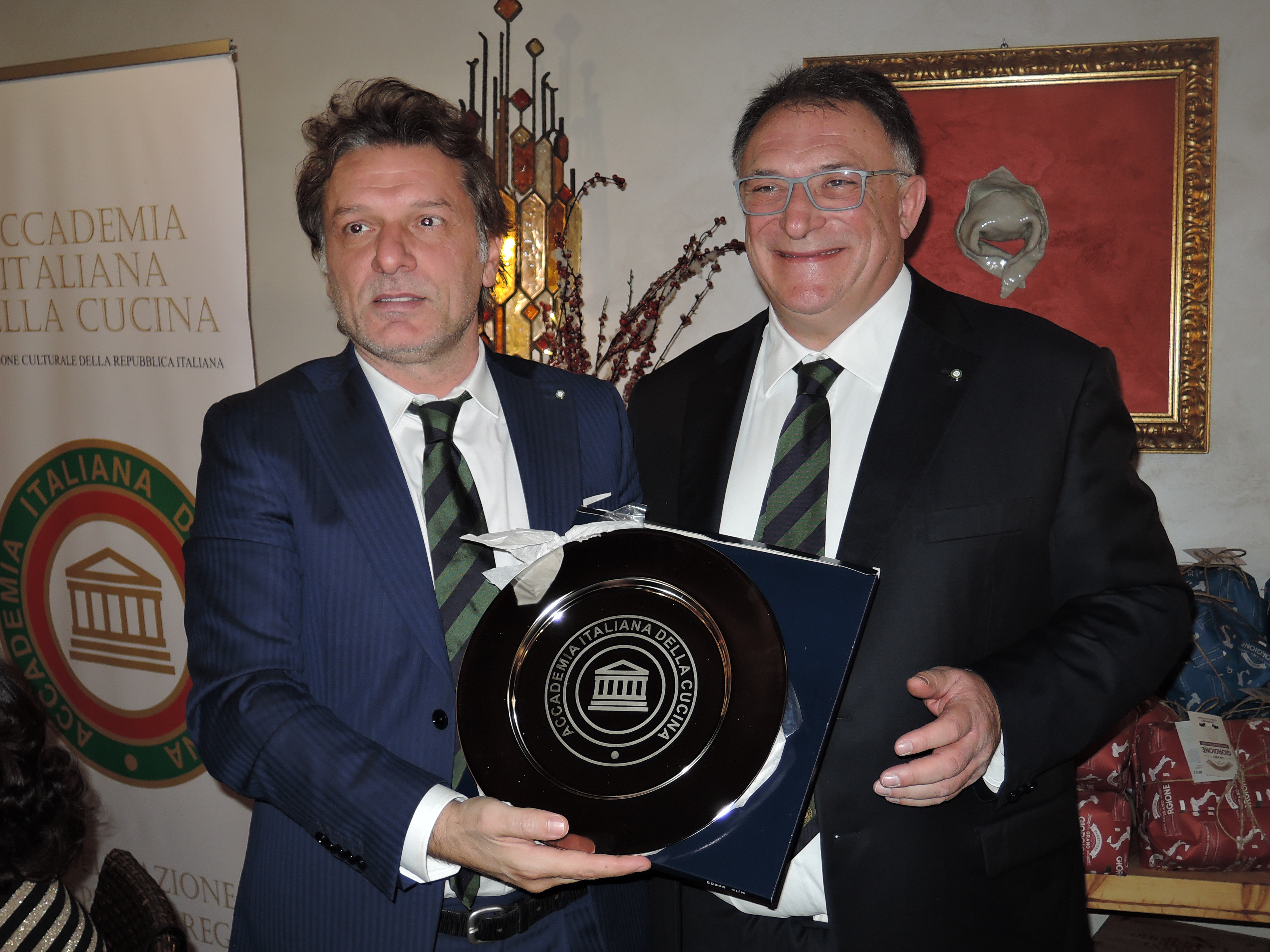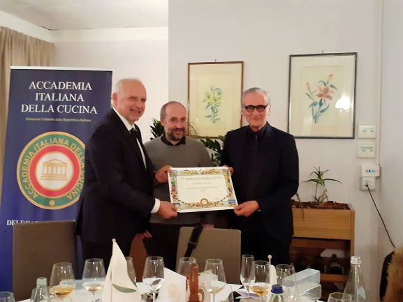 In occasione della consueta cena per lo scambio degli auguri di Natale tenuta presso la a vineria Sottapera a Potenza, è avvenuta la consegna dei premi nazionali assegnati su proposta della Delegazione locale guidata da Anna Paola Vergari. Il premio "Dino Villani" è andato a Vittoria Scote, titolare dell'azienda “Per Boschi e Contrade” che ha ricevuto il premio soprattutto per la famosa Fasoldò, crema dolce di fagioli rigorosamente di Sarconi coltivati ed essiccati come un tempo (in foto 1, Vittoria Scote con Ettore Bove, Direttore Centro Studi Basilicata). Assegnatario del premio "Giovanni Nuvoletti" è stato Rocco Catalano, “romantico assaggiatore e narratore di vini e storie di cibo di periferia, da sempre appassionato di ricerca e selezione di piccoli produttori di grande qualità”, come egli stesso si definisce (in foto 2 con le Accademiche Michela La Vecchia e Rosanna Santagata). Foto 3. Un momento della serata.