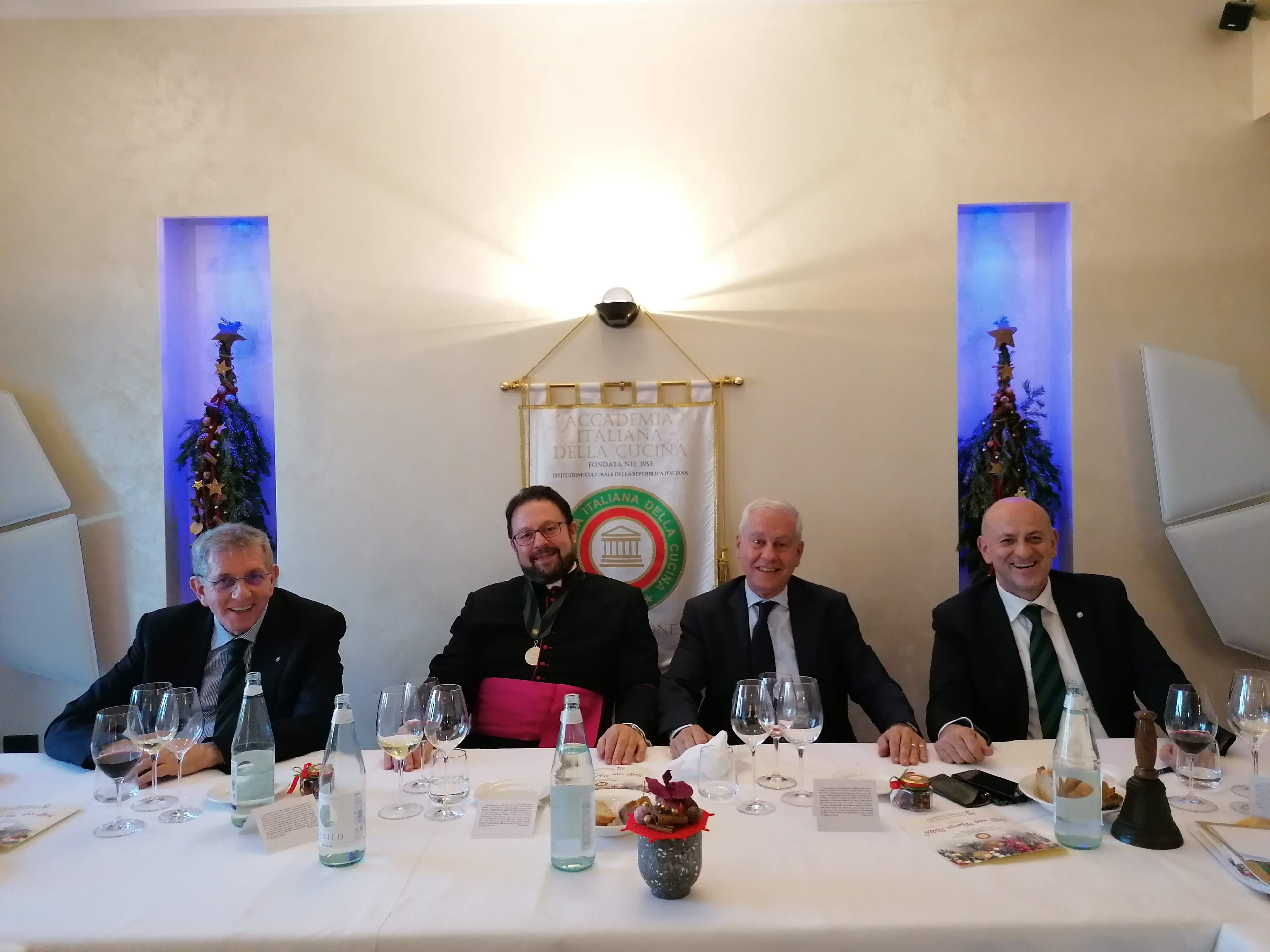 La Delegazione di Chieti si è riunita per la consueta conviviale prenatalizia e quest'anno è stato scelto il ristorante "Villa Maiella" di Guardiagrele gestito egregiamente dalla famiglia Tinari, che vanta in sala Pascal Tinari, nominato miglior sommelier d'Italia per il 2019. Un piccolo capolavoro gastronomico, il menu predisposto insieme alla Consulta, che ha contemperato le esigenze della tradizione festiva abruzzese e le ultime novità dell'estro di Angela, Peppino e Arcangelo Tinari. Ospiti della Delegazione sono stati Giovanni Lo Giudice, Legato della Legazione per lo Stato Città del Vaticano e il signor Prefetto Giacomo Barbato.
