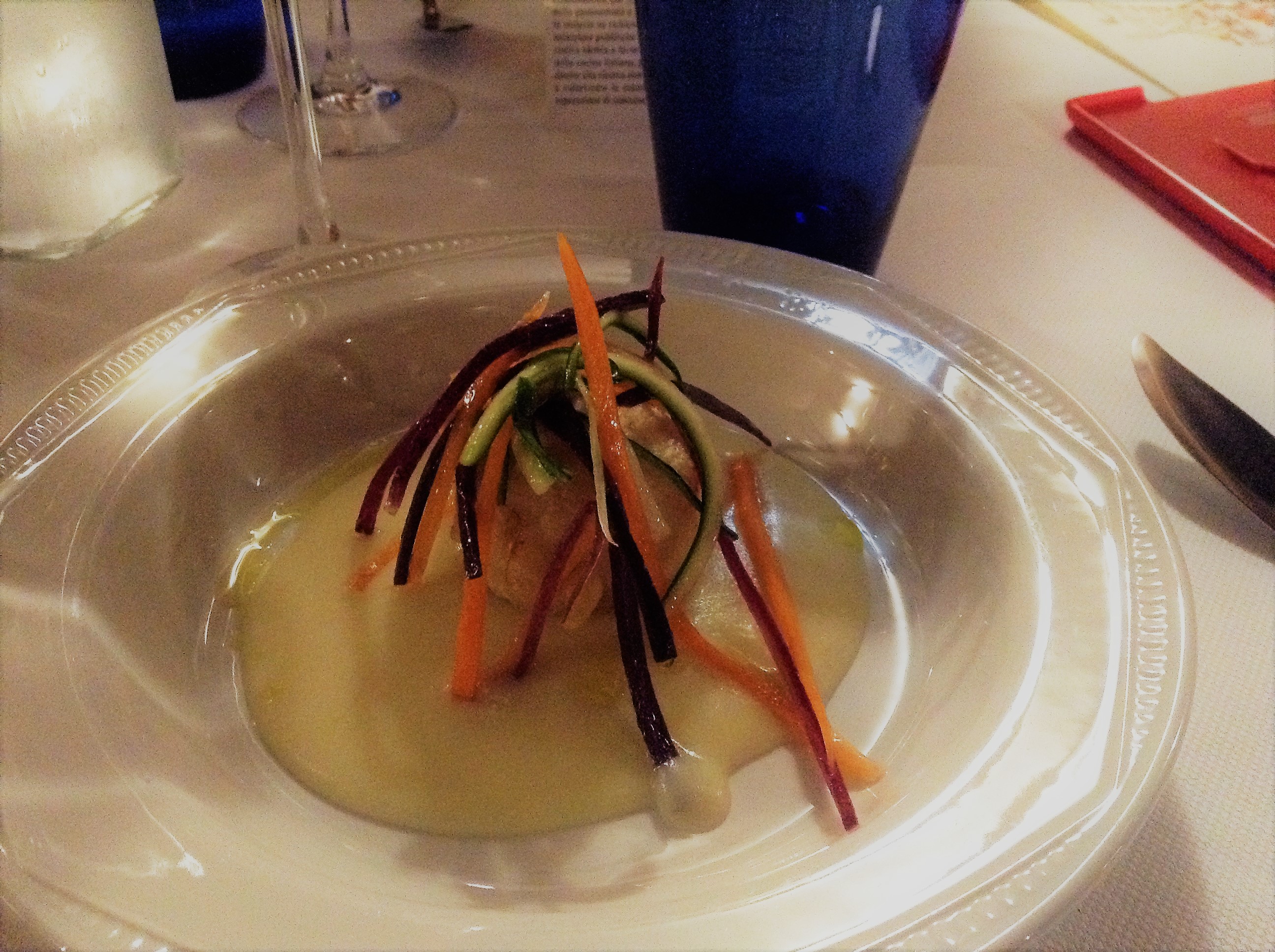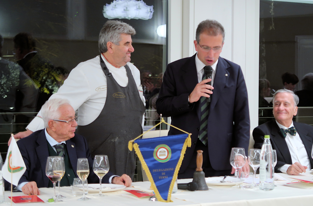 La Delegazione di Terni si è riunita per la cena degli Auguri presso il ristorante Piermarini a Ferentillo (TR), in una bella villa immersa nel verde della Valnerina. Durante la serata sono stati celebrati i trentacinque anni di appartenenza all’Accademia di Claudio Borzacchini, con la consegna del diploma e del distintivo da parte del Delegato Luca Cipiccia e del Delegato onorario e Coordinatore Territoriale Umbria Guido Schiaroli. I Simposiarchi, Guido Schiaroli e Mario Guerra, hanno scelto un menu ispirato alla cucina del territorio. Il ristorante Piermarini, già insignito del Diploma di Buona Cucina nel 2013, si conferma un riferimento nella ristorazione e gastronomia del territorio. Serata molto partecipata e ben riuscita, conclusa secondo tradizione con un brindisi di Buon Natale e di un felice e sereno Anno Nuovo agli Accademici e ai numerosi famigliari presenti. Foto 1. Da destra, il Delegato onorario e CT Umbria Guido Schiaroli, Claudio Borzacchini, il Delegato Luca Cipiccia. Foto 2. Il Delegato Cipiccia e Borzacchini. Foto 3. I Simposiarchi della serata Guido Schiaroli e Mario Guerra (a destra), il Delegato Luca Cipiccia e lo chef Primo Piermarini. Foto 4. Cestino croccante, ricotta mantecata e mandorle tostate.