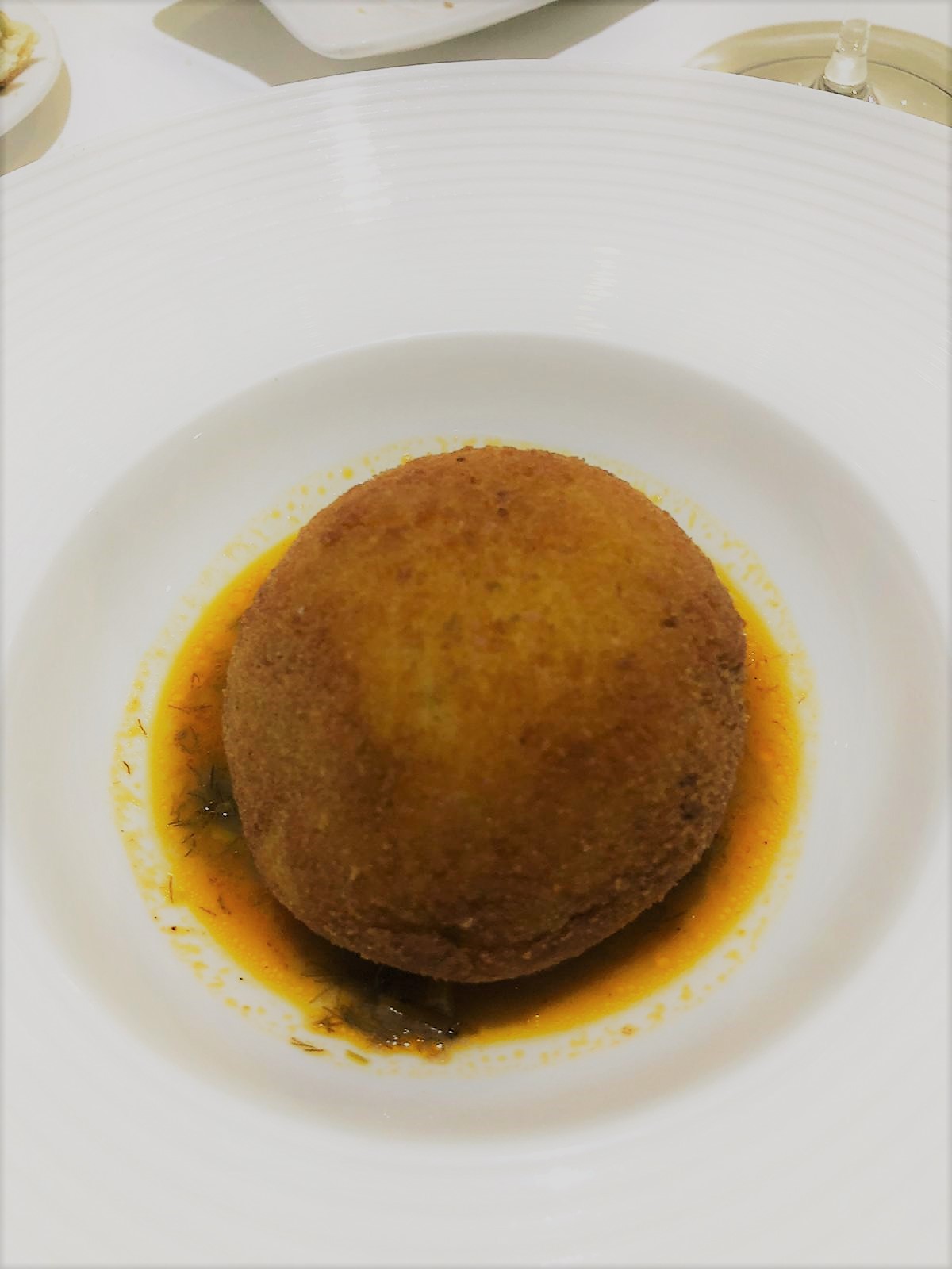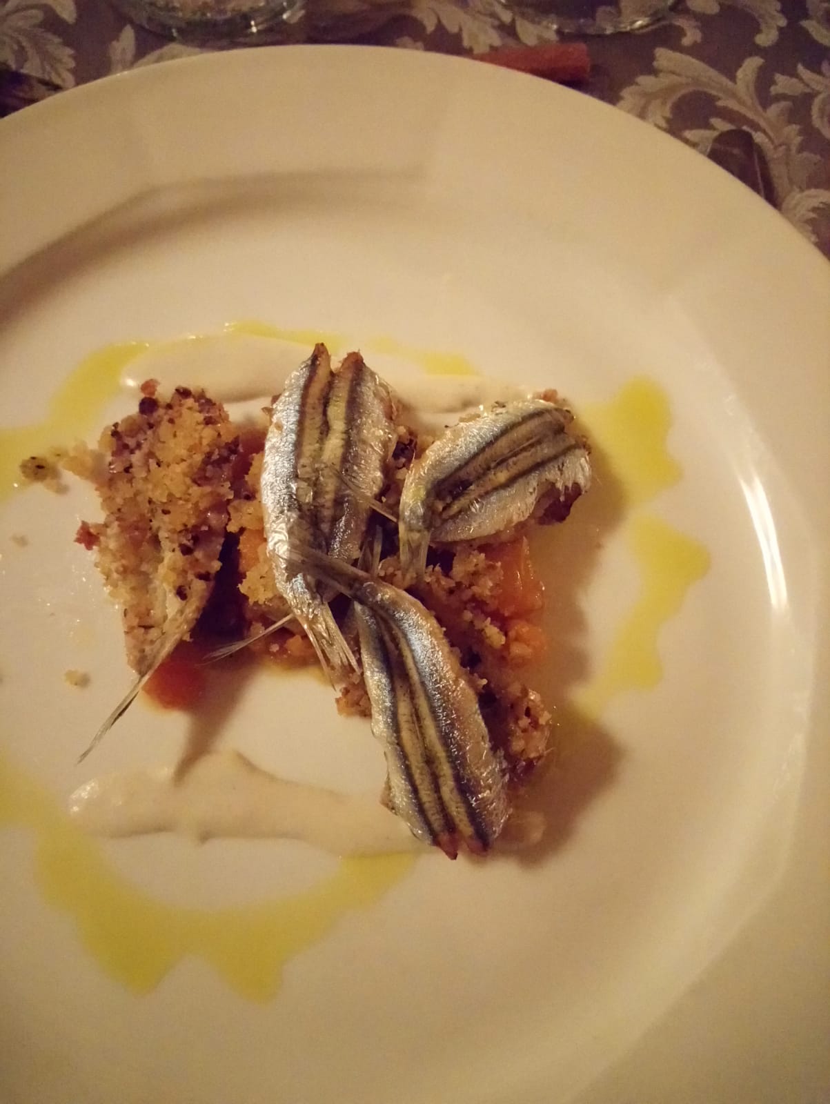 La Delegazione di Agrigento si è ritrovata per la riunione conviviale degli auguri al ristorante "Kalos" di Agrigento. Foto 1 e 2. Accademici e gentili ospiti intervenuti. Foto 3. Nella tradizione di Santa Lucia arancina rivisitata con triglia e finocchietto selvatico. Foto 4. Insalata di mare scomposta.