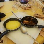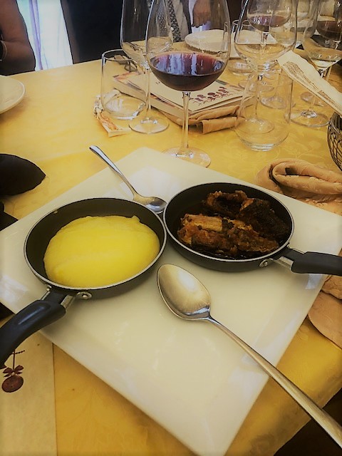 Si è tenuta presso il ristorante "Ocaro" di Porto Tolle (RO) la riunione conviviale degli auguri della Delegazione di Rovigo-Adria-Chioggia. Grandi protagoniste del pranzo sono state le anguille del Delta del Po nelle preparazioni alla brace e in brodetto con, in più, la scoperta di un piatto antico dei pescatori ora praticamente sconosciuto: il fegato di anguilla preparato in padella con cipolla, rosmarino e sugo di selvaggina. Foto 1. Il Delegato Giorgio Golfetti con la signora Gianna e il figlio Nicola, gestori del ristorante. Foto 2. Accademici a tavola. Foto 3. anguilla in brodetto con polenta. Foto 4. Fegato di anguilla in padella con crostini di polenta fritta.