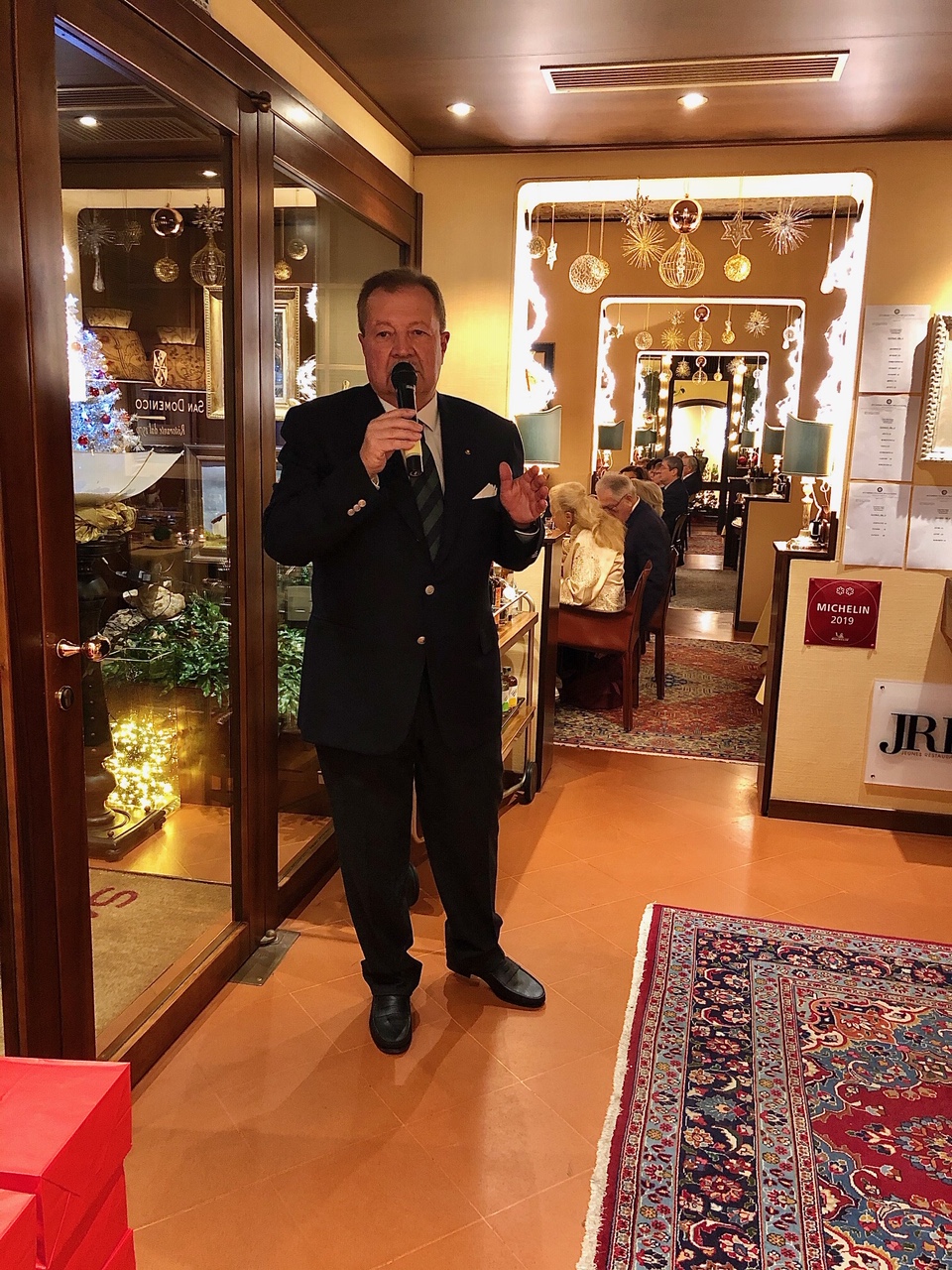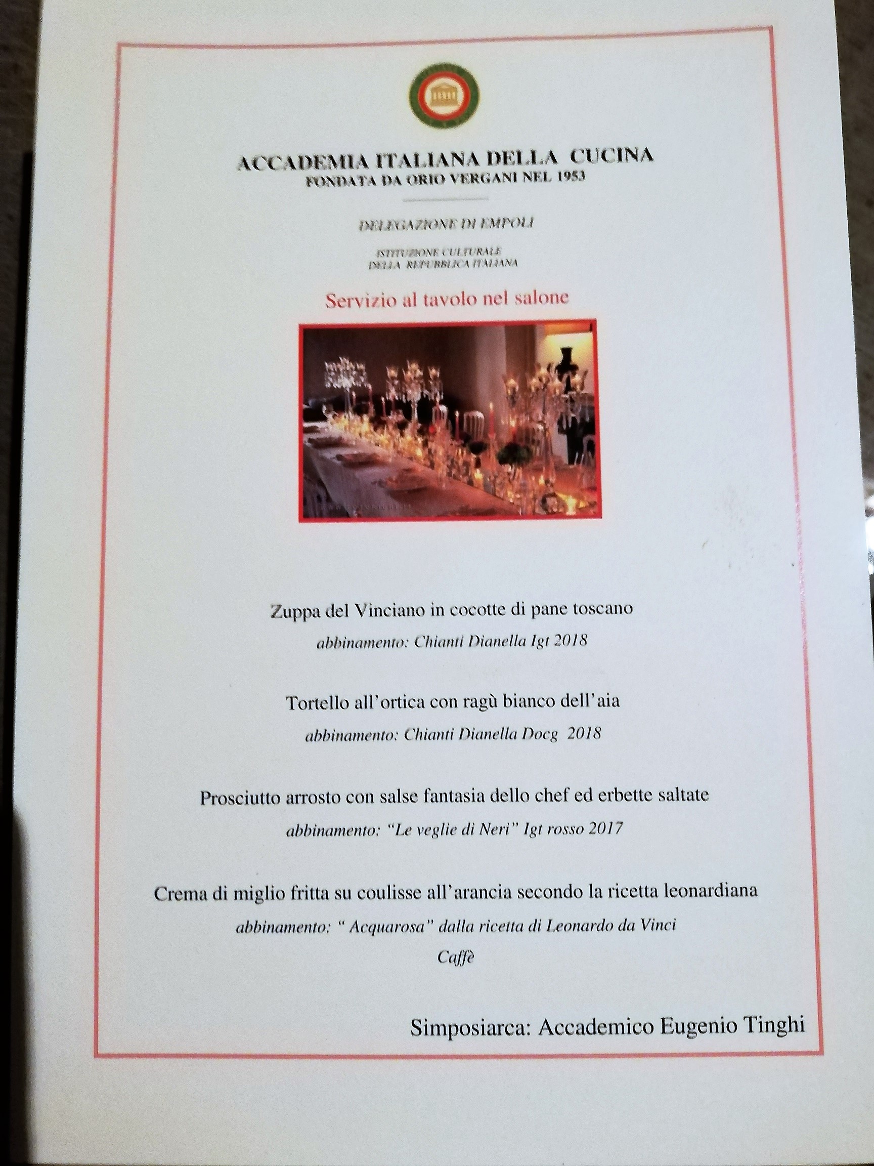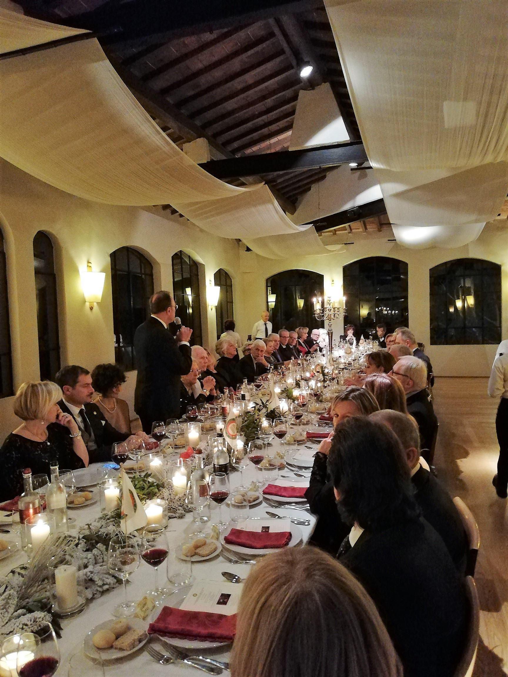 La Delegazione di Empoli si è riunita per la riunione conviviale degli auguri a "Villa Dianella" in Vinci (FI). Gli Accademici guidati dal Delegato Massimo Vincenzini, insieme ai numerosi e prestigiosi ospiti, hanno apprezzato l’atmosfera della sala resa ancora più suggestiva dall’ allestimento del tavolo imperiale (foto 1). Il Delegato Massimo Vincenzini ha ripercorso i principali eventi accademici dell’anno trascorso con particolare riferimento al trentennale della Delegazione (foto 2). Il Simposiarca della serata Eugenio Tinghi ha intrattenuto i presenti illustrando il menu (foto 3).