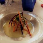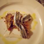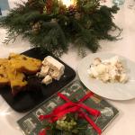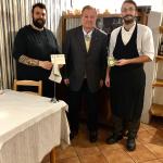 La Delegazione di Biella si è riunita al ristorante "Da Armando" sulla collina di Camburzano per la riunione conviviale degli auguri. Il Simposiarca della serata, Giovanni Bonino, ha voluto esaltare la passione dello chef per la cucina di mare con un menu dedicato. Foto 1. Accademici e ospiti. Foto 2. Il Simposiarca Giovanni Bonino illustra il menu. Foto 3. La Delegata Marialuisa Bertotto consegna il libro dell'Accademia "Le torte dolci e salate nella cucina della tradizione regionale" allo chef Andrea Maffiotti. Foto 4. Alici in panatura di agrumi e trifolata di verdure d'autunno.