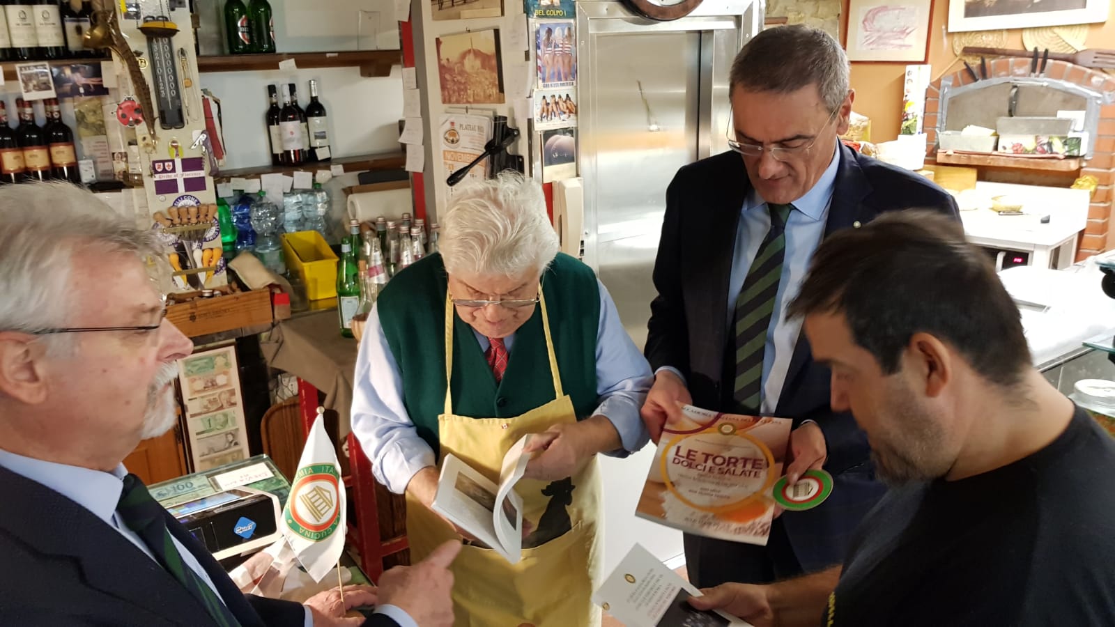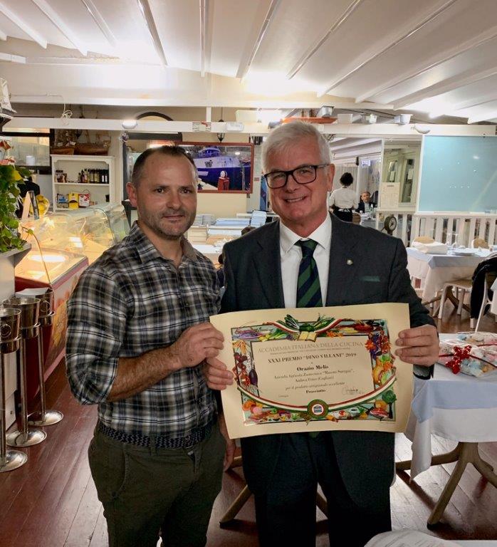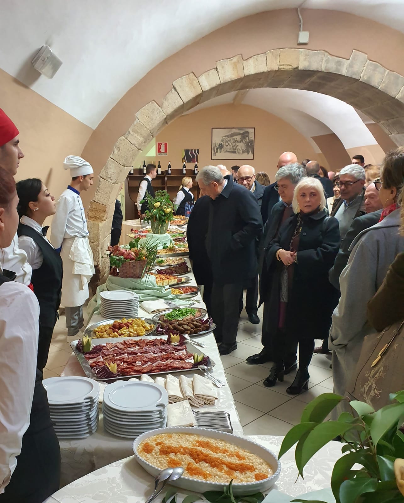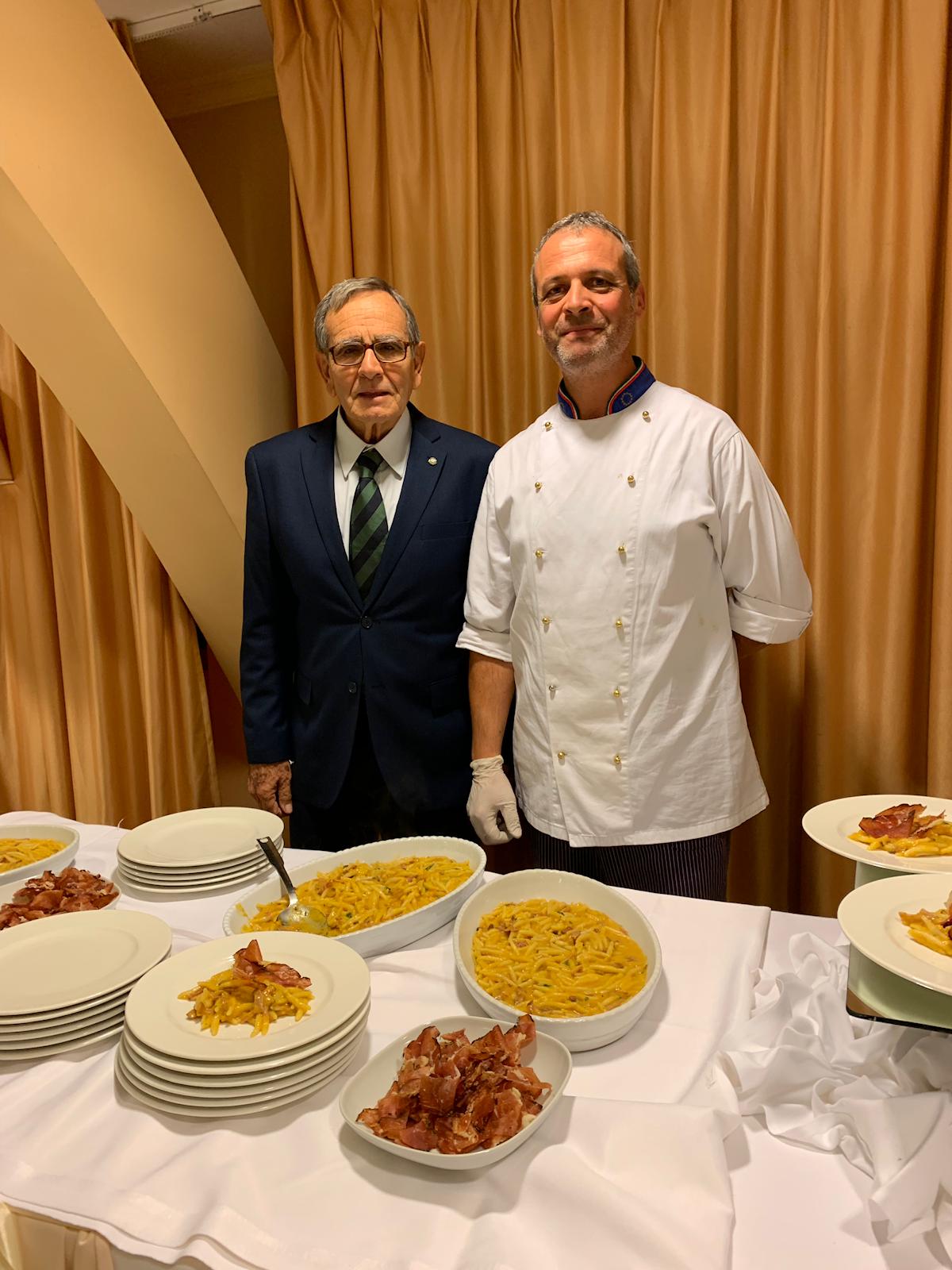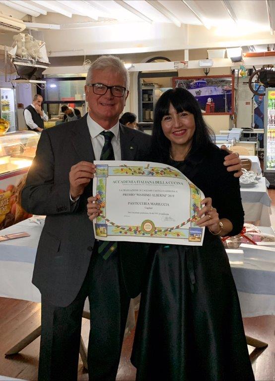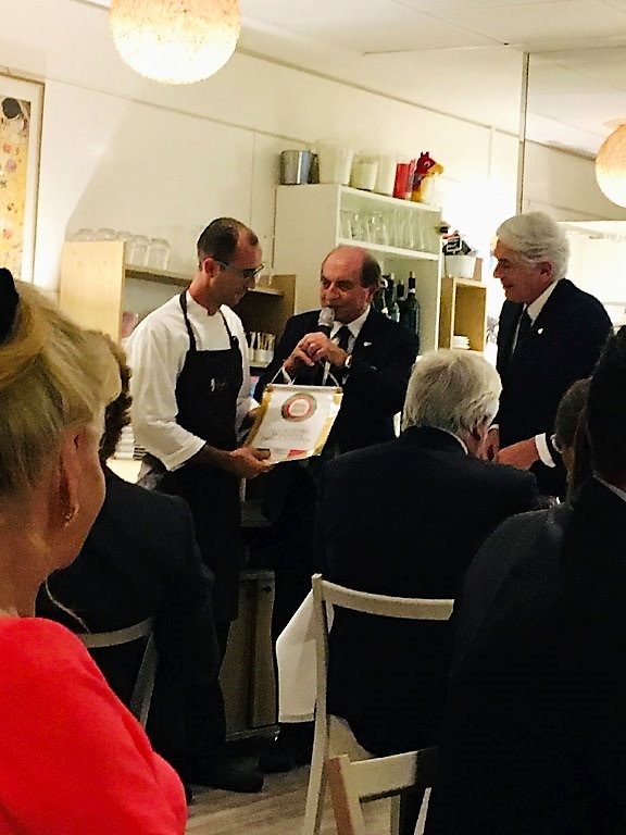 La Delegazione di Cagliari Castello si è riunita presso il ristorante “4 Mori al mare, da Massimo” nello storico quartiere di Sant'Elia, con un menu di pesce, nel rispetto della più autentica tradizione cagliaritana. In occasione della cena organizzata dal Simposiarca Franco Porceddu e svoltasi con il consueto clima di cordialità e amicizia, è stato consegnato il Premio “Dino Villani" (2019) al sig. Orazio Melis titolare dell’azienda “Masoni Suergiu” per la produzione di un prosciutto di alta qualità, e il Premio “Massimo Alberini” (2019) alla sig.ra Annalisa Saddi, titolare della pasticceria “Mariuccia”, storica azienda del cagliaritano. Nelle foto la consegna dei premi da parte del Delegato di Cagliari Castello Francesco Panu.