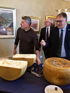 L’Antica Corte Casa Marini ha accolto autorità, Accademici, opinionisti, appassionati, esperti del settore per un incontro organizzato dalla Delegazione Terre Modenesi per approfondire il legame di filiera che contraddistingue la produzione del Parmigiano Reggiano di Montagna. Al benvenuto iniziale della Delegata Rosalba Caffo Dallari e del Sindaco di Polinago Domenico Tomei è seguita la presentazione del Coordinatore Territoriale dell'Emilia Pier Paolo Veroni, moderatore dell'incontro (Foto 1. Da sinistra Delegata Caffo Dallari, Sindaco Tomei, Giorgio Antonioni Tesoriere di Terre Modenesi). Tra i relatori, Rosanna Scipioni, Vice Delegata di Bologna dei Bentivoglio e Claudio Guidetti, Segretario Consorzio Parmigiano Reggiano sede di Modena (Foto 2. Guidetti, Veroni, Scipioni). Alle relazioni è seguita una esposizione e descrizione di forme di Parmigiano Reggiano provenienti da tre caseifici distinguendo il formaggio anche in base alla razza delle mucche dalle quali deriva il latte e il test della "battitura" seguito dalla spaccatura e conseguente analisi di colore, consistenza della pasta, profumo (foto 3 e 4). L'evento si è concluso con una degustazione guidata di tre campioni delle forme aperte accompagnata da un calice di vino.