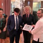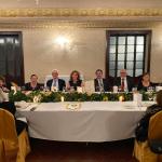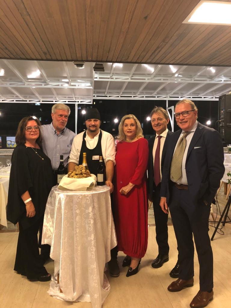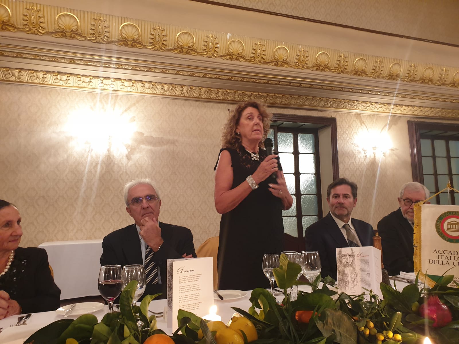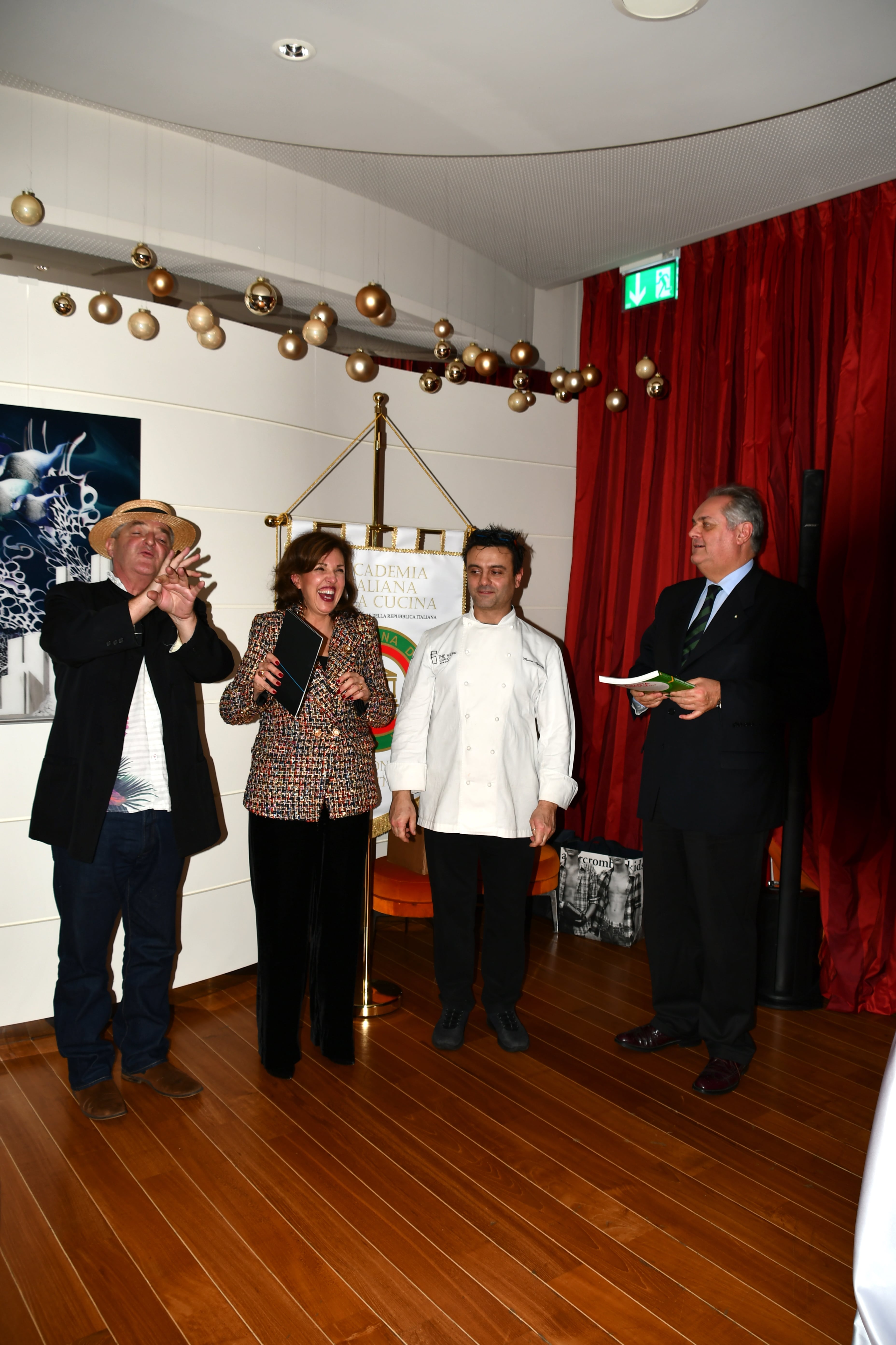 Tre importanti eventi hanno interessato la Delegazione londinese nell'ambito "IV Settimana". Domenica 17 novembre, alla presenza della Lord Mayor della città Anna Rothery, si è tenuta una cena di gala che ha voluto essere il pre-opening della “Settimana”, coincidendo fra l’altro con l’apertura ufficiale della Legazione di Liverpool dell’Accademia guidata da Marco Boldini. La risposta dei presenti è stata entusiasta, a conferma della vibrante italianità esistente anche al di fuori della capitale. Il 22 novembre, nei locali dell’Istituto Italiano di Cultura di Londra, è stato organizzato un convegno, molto apprezzato e partecipato, sul tema ”Rispettare il pianeta mangiando sano” con relatori: il prof. Paolo Vineis dell’Imperial College, il prof. Luigi Gnudi del King’s College, la dott.ssa Cecilia Bartolucci del CNR, la scrittrice Simonetta Agnello Hornby Accademica di Londra. Hanno moderato: l’addetta scientifica dell’Ambasciata dott.ssa Luisa Tondelli e il Consigliere di Presidenza e Delegato di Londra Maurizio Fazzari. I temi trattati sono stati la correlazione tra cibo e patologie, l’obesità e il diabete giovanile, la sostenibilità della filiera alimentare, l’educazione e le abitudini alimentari delle famiglie nel corso degli anni. Il 24 novembre si è svolta la cena di gala di chiusura della “Settimana” nei locali del ristorante italiano "Sartoria", alla presenza di S.E. l’Ambasciatore Raffaele Trombetta (Accademico onorario) con la signora Victoria, del Ministro dell’Ambasciata Alessandro Motta, del Console Generale Marco Villani con la signora Claudia e del Presidente della Camera di Commercio Italiana in UK Alessandro Belluzzo. Serata eccezionale con i due noti chef Francesco Mazzei e Giorgio Locatelli, uniti per l’occasione, che hanno preparato un menu molto apprezzato dai numerosi ospiti (foto 3-4). Foto 1. Il Delegato Maurizio Fazzari. Foto 2. In piedi, Maurizio Fazzari e alla sua sinistra la signora Victoria, moglie di S.E. Ambasciatore Trombetta; a seguire l'Accademico Lord Simon Russel of Liverpool e la Vice Delegata Rosella Middleton.
