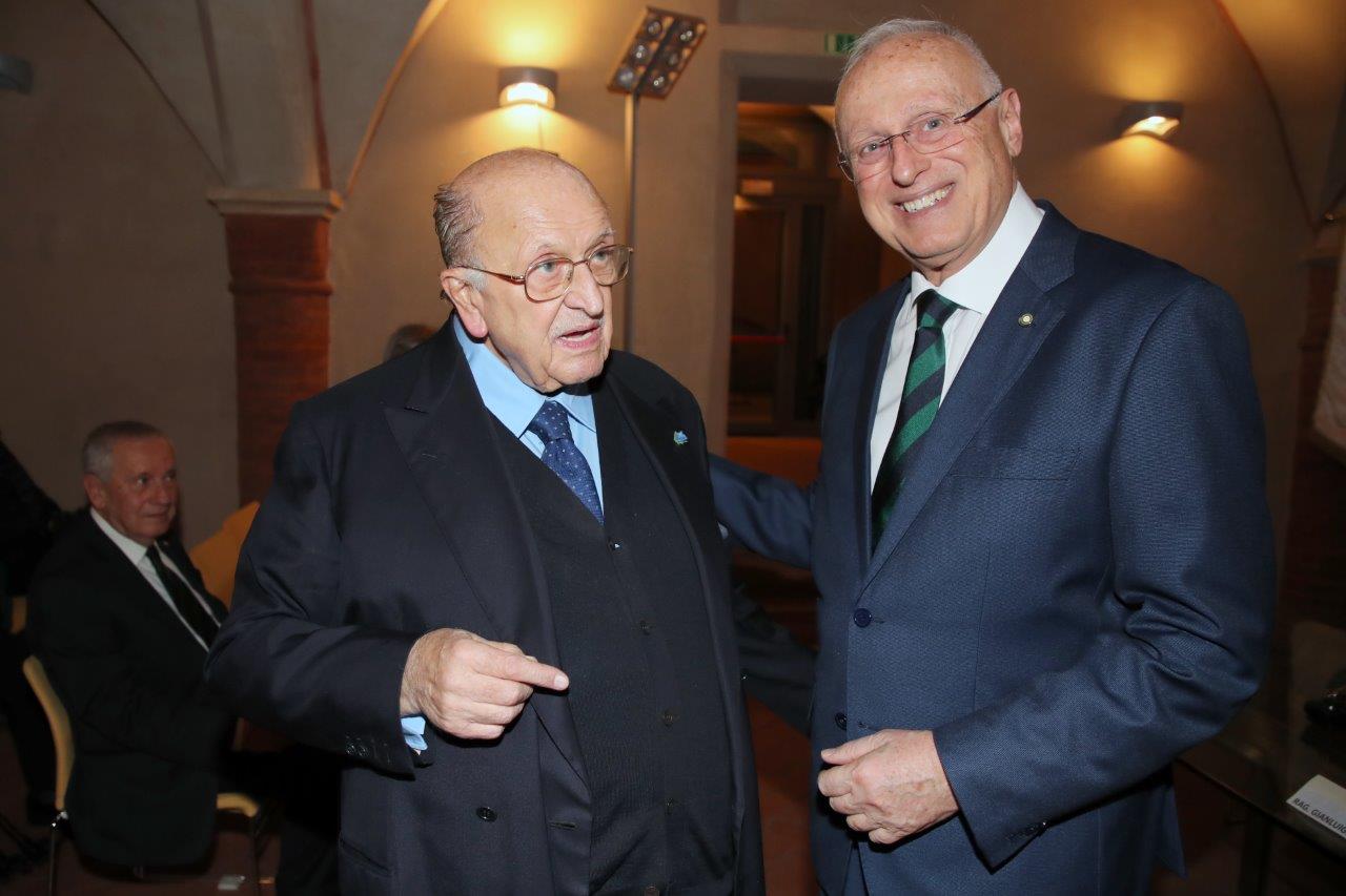 La Delegazione di Imola guidata da Antonio Gaddoni, ha organizzato un incontro aperto al pubblico sulla figura di Gianluigi Morini presso la Biblioteca comunale di Imola. All'evento, moderato da Enrico Vignoli, ha preso parte il Segretario Generale Roberto Ariani e sono intervenuti Gianluigi Morini e Massimo Montanari, docente di Storia dell'alimentazione e Accademico onorario di Imola. In foto 1 (da sinistra). Vignoli, Gaddoni, Morini, Montanari, Ariani. Foto 2. Il Segretario Generale Roberto Ariani con Gianluigi Morini. Foto 3-4. Alcuni momenti dell'evento.