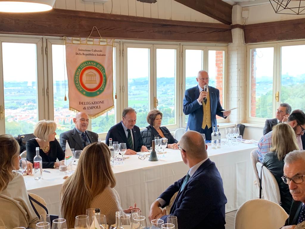 Si è tenuto il 16 novembre scorso il convegno organizzato dalla Delegazione di Empoli, nell’ambito della Mostra Mercato Nazionale del Tartufo Bianco (foto 1). A disquisire sul tema tuber magnatum sono stati esperti del settore quali Zeffiro Ciuffoletti, Manuela Giovannetti, Carlo Viti e Guido Franchi, moderati da Massimo Vincenzini Delegato di Empoli. I convenuti, alla presenza anche del Segretario Generale Roberto Ariani (foto 2), si sono poi riuniti a tavola per gustare le pietanze a base di tartufo presso il ristorante Miravalle (Foto 2 e 3). Per questa speciale ricorrenza tutti gli ospiti sono stati omaggiati di una pubblicazione edita per la circostanza, contenente una raccolta di disegni realizzati dal Maestro ed Acccademico Dilvo Lotti, insigne pittore di San Miniato (Foto 4).