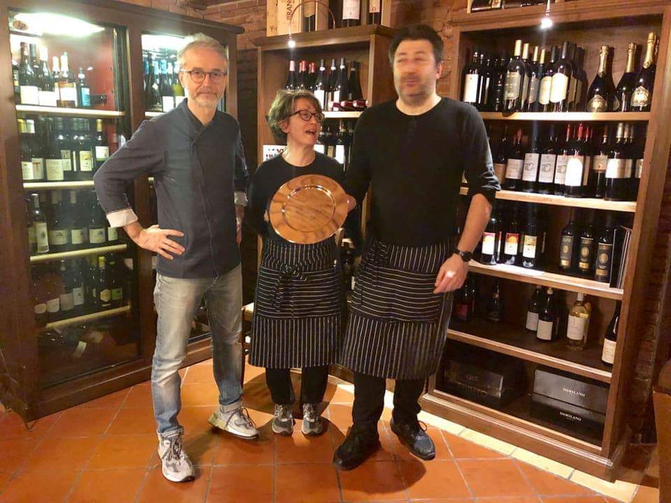 Alla presenza del Segretario Generale Roberto Ariani che ha concluso l'incontro, sono intervenuti il Presidente Onorario Giovanni Ballarini e l'Accademico Onorario Massimo Montanari. Foto 1: da destra Roberto Ariani, Antonio Gaddoni Delegato, Giovanni Ballarini, Massimo Montanari e l'assessore Claudia Resta; Foto 2: il cuoco Luca e i gestori Debora e Federico con il piatto dell'Accademia; Foto 4: un momento della riunione conviviale che si è svolta all' "Osteria da noi e vini".