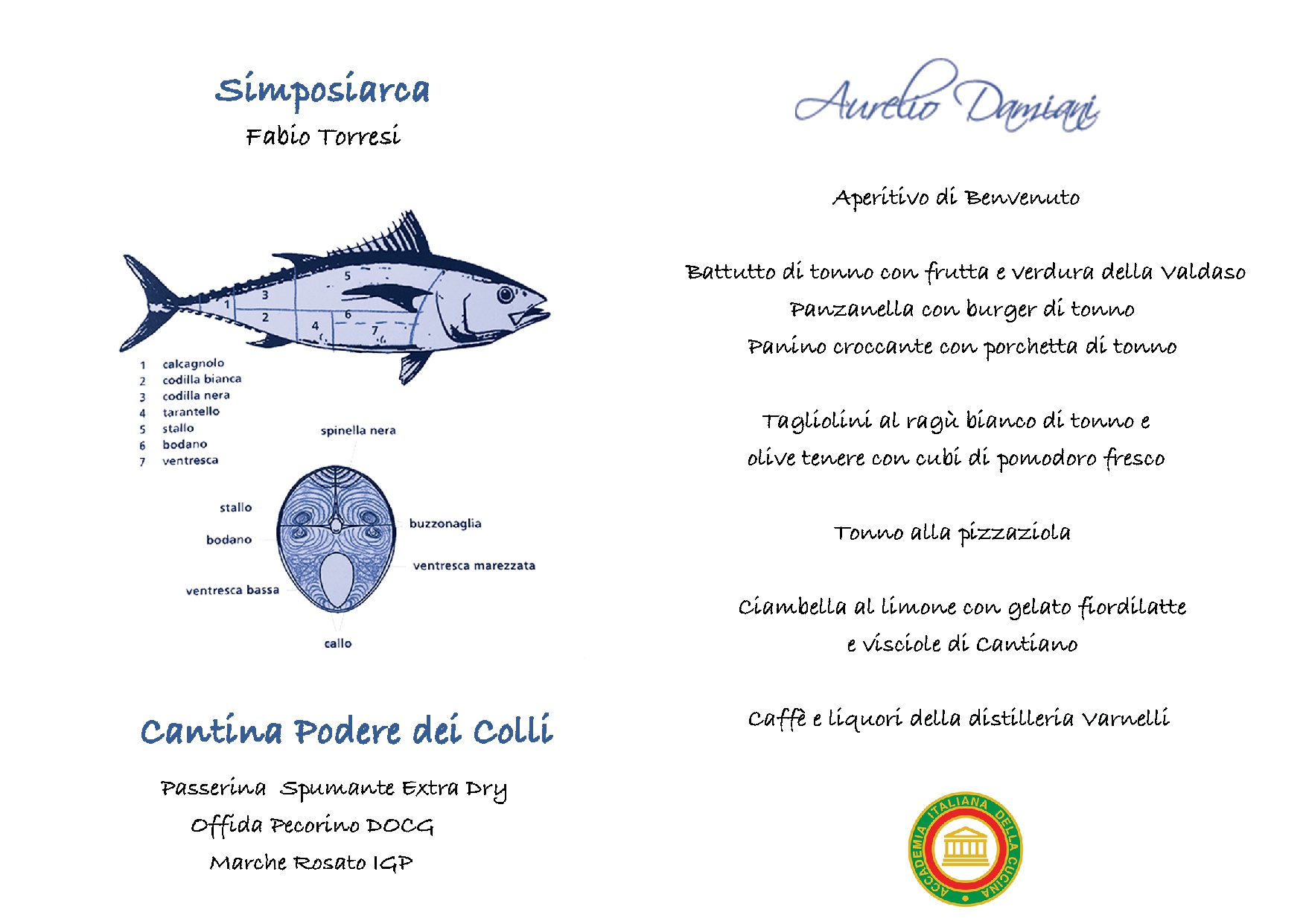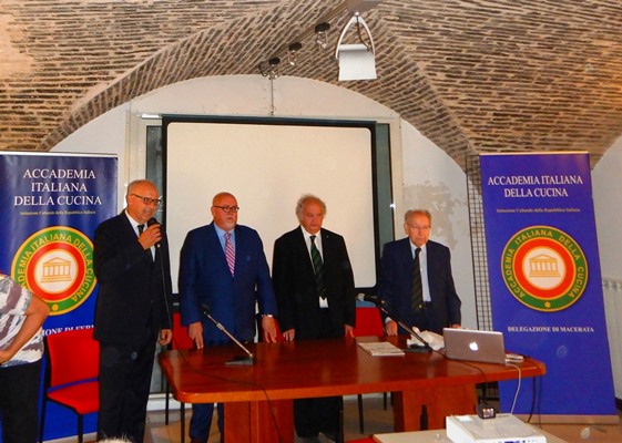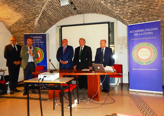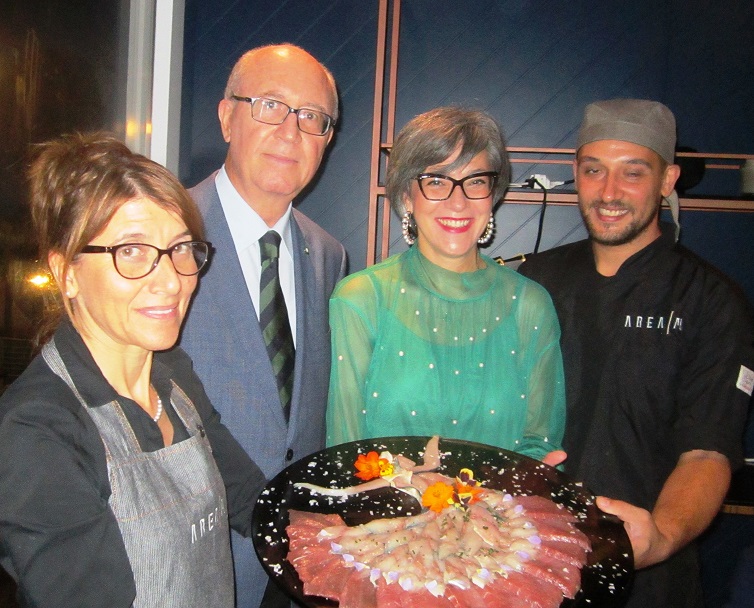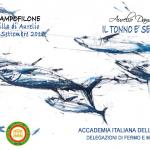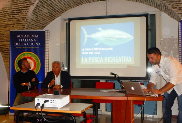 Le Delegazioni di Fermo e Macerata, con il patrocinio del Comune di Porto S.Giorgio, hanno organizzato un convegno sulla presenza del tonno rosso in Adriatico e sull’incremento del consumo alimentare di questo pesce nelle tavole dei marchigiani. Foto 1: relatori al convegno il prof. Piccinetti e il dott. Fichera. Foto 2, 3 e 4: alcuni momenti del convegno. Foto 5 (da sinistra): Ugo Bellesi (Delegato di Macerata) e Fabio Torresi (Delegato di Fermo) omaggiano lo chef Aurelio Damiani. Foto 6 e 7: menu.