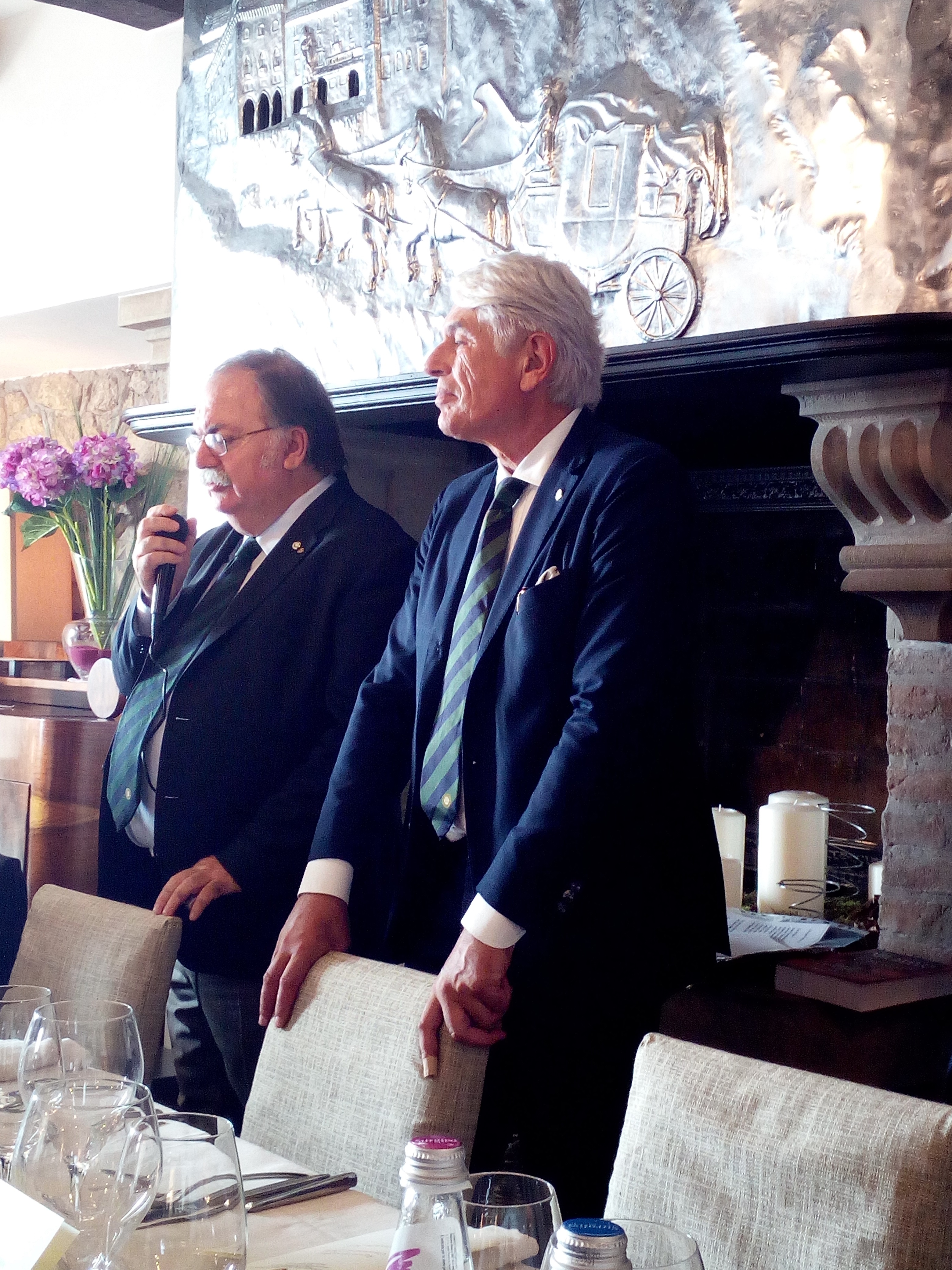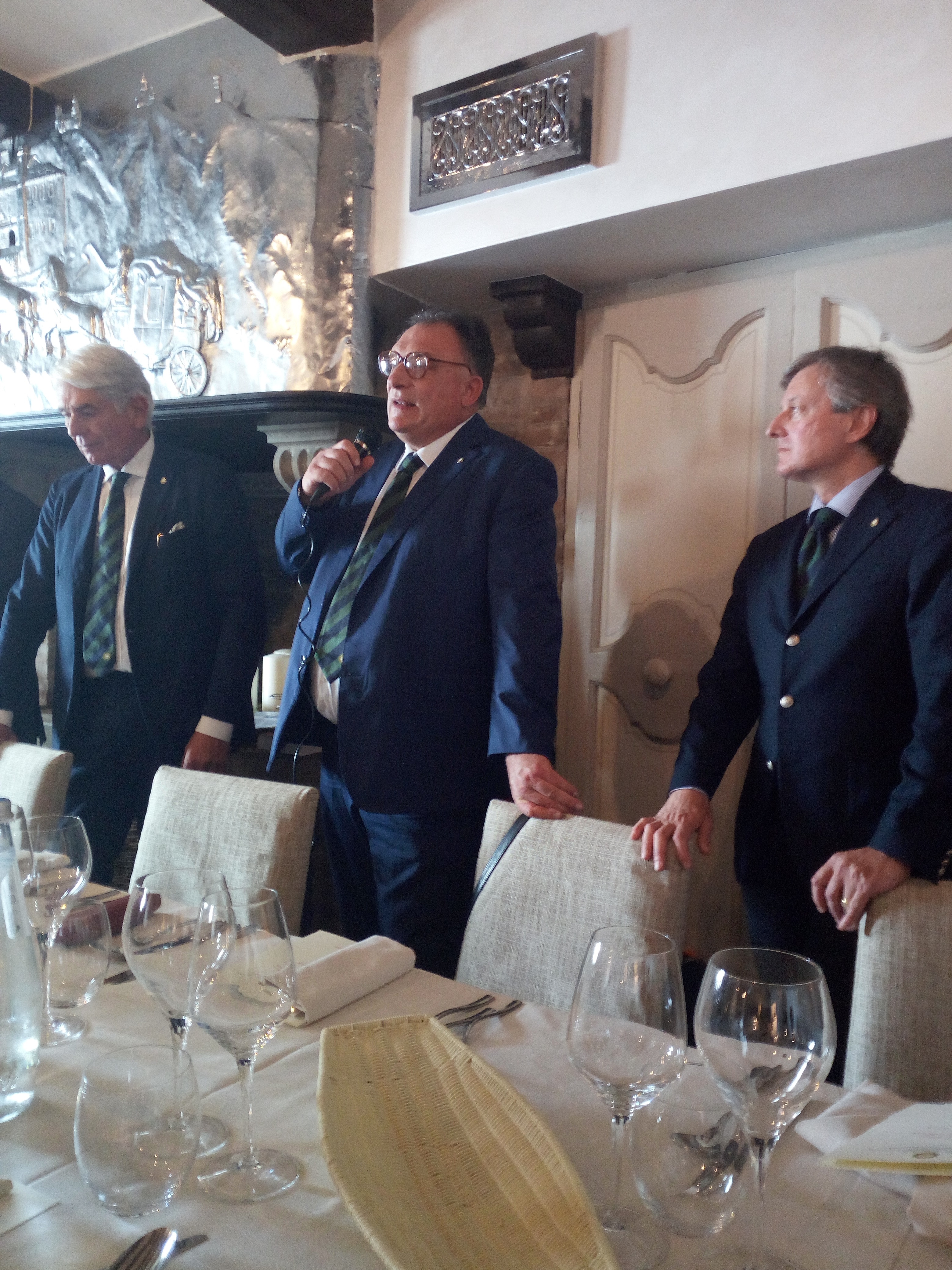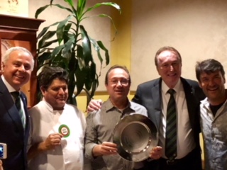 La Delegazione di San Marino, in occasione dell’evento "Regioni di Confine…Conviviale di Libertà", organizzato in collaborazione con i Coordinatori Territoriali di Emilia, Romagna e Marche, si è riunita presso il ristorante "Righi La Taverna". Foto 1: aperitivo in Piazza della Libertà. Foto 2 e 3: interventi dei Coordinatori Territoriali e del Delegato di San Marino. Foto 4: Pier Paolo Veroni, Coordinatore Territoriale Emilia, Elisabetta Righi Iwanejko Consultore Segretario Delegazione San Marino e Andrea Negri Delegato di San Marino. Foto 5: passatelli con fossa, seppia e funghi galletti. Foto 6: faraona tartufata alla Rossini, patate gratinate, mazzetto di fagiolini.