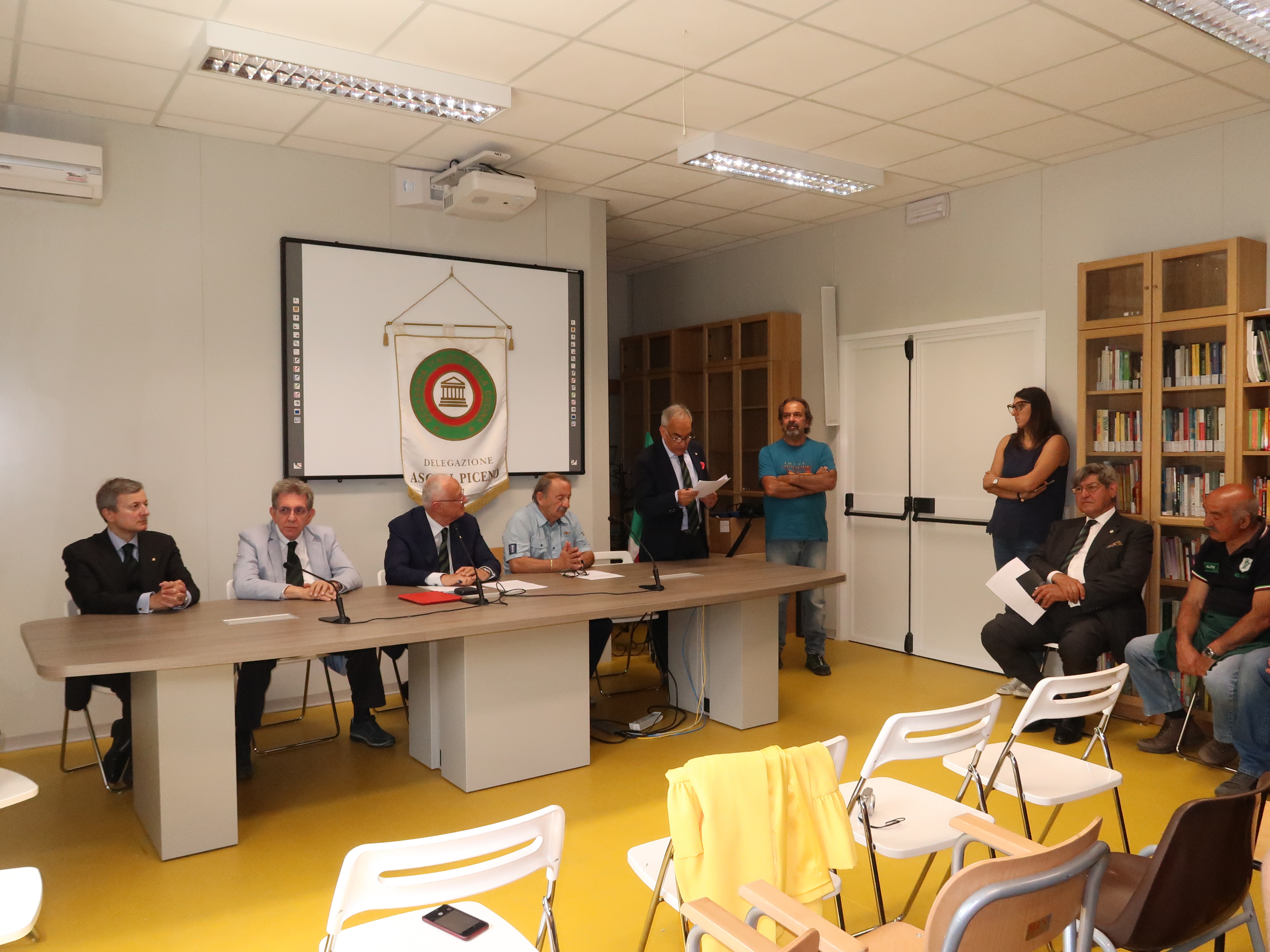 Il Consiglio di Presidenza all'unanimità ha deliberato l'assegnazione di un contributo a Gino Quattrociocchi per poter proseguire la sua attività alla riscoperta dei vecchi sapori nel suo Rifugio delocalizzato dopo gli eventi sismici. Foto 1: (da sinistra) il Consigliere di Presidenza Mimmo D'Alessio, il Delegato di Ascoli Piceno Vittorio Ricci, il Segretario Generale Roberto Ariani. Foto 2 e 3: momenti relativi all'evento. Foto 4-6: consegna del contributo economico e della medaglia al signor Gino Quattrociocchi, proprietario del rifugio degli Alpini. Foto 7: consegna del Premio "Dino Villani" a Vittoria di Cola. Foto 8: un momento dell'evento. Foto 9: foto di gruppo.