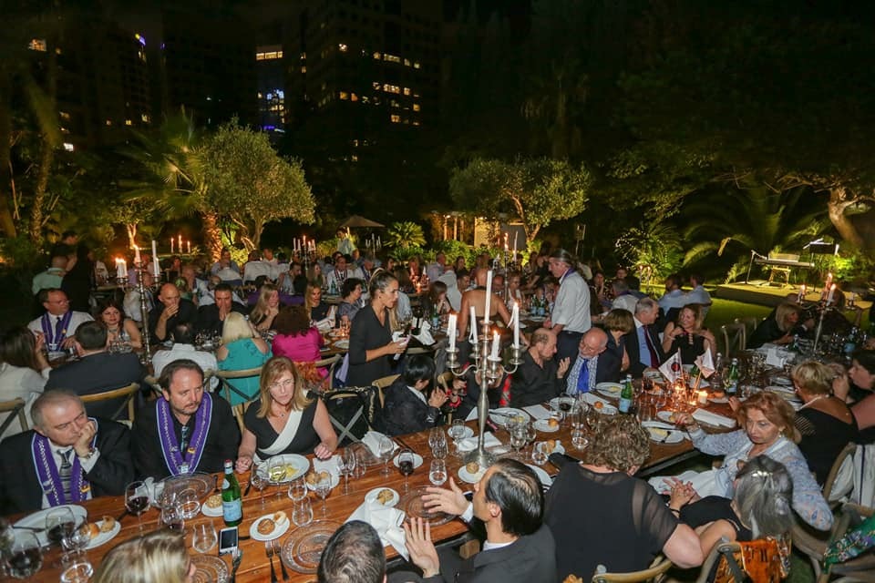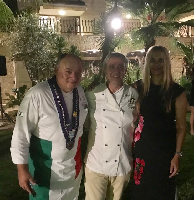 La Delegazione di Tel Aviv ha partecipato come invitata d'onore alla cena di gala del bailliage israeliano della Chaine des Rotisseurs, organizzata quest'anno nella Residenza dell'Ambasciatore d'Italia S.E.Gianluigi Benedetti e che ha avuto come tema il cibo italiano nella sua eccellenza. Foto 1 (da sinistra): Ron Fogel Presidente della Chaine des Rostisseurs in Israele, S.E. l'Ambasciatore d'Italia Gianluigi Benedetti e la Delegata Cinzia Klein. Foto 2: il vice Delegato Arie Sonnino e la vice Delegata Sabrina Fadlun. Foto 3 (da sinistra): lo chef israeliano Moshe Barel, lo chef italiano Walter Tripodi e la Delegata Cinzia Klein. Foto 4: ospiti a tavola. Foto 5: l'esclusivo giardino della Residenza dell'Ambasciatore.