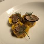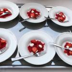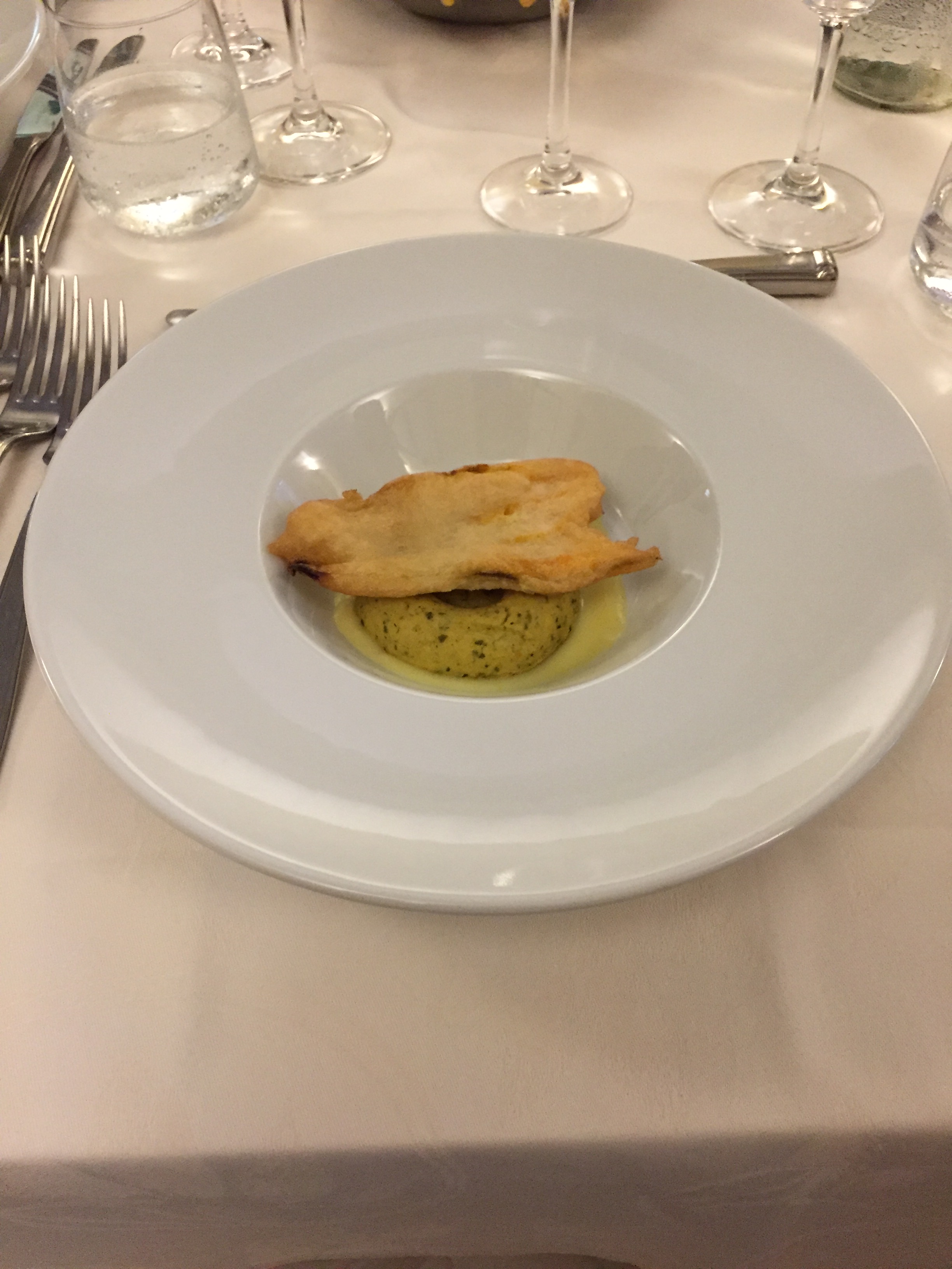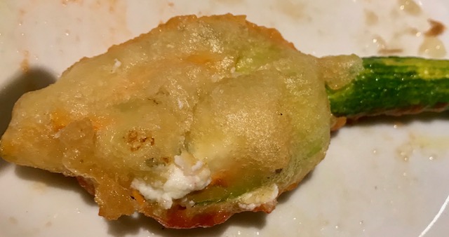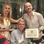 La Delegazione di Tel Aviv si è riunita presso il ristorante "La Repubblica di Ronimotti" in occasione della riunione conviviale. Foto 1: la Delegata Cinzia Klein, S.E. l'Ambasciatore d'Italia Gianluigi Benedetti e lo chef Motti Sofer a cui è stato consegnato il diploma di Buona Tavola. Foto 2: la Delegata Cinzia Klein e il Presidente della Camera di Commercio israeliana Roberto della Rocca. Foto 3: Il fiore di zucca ripieno realizzato secondo una ricetta particolare e personale dello chef. Foto 4: un piatto realizzato in occasione della serata.