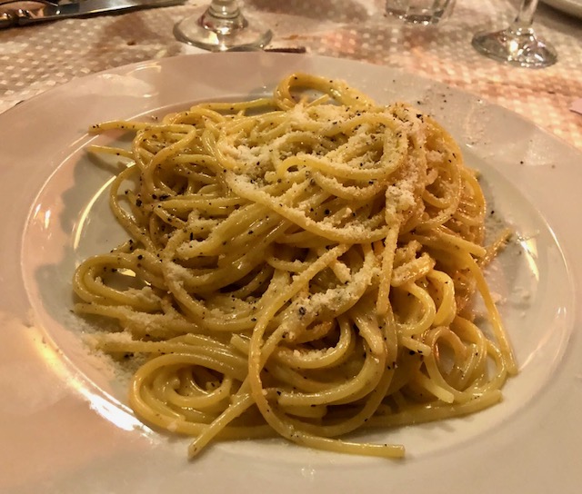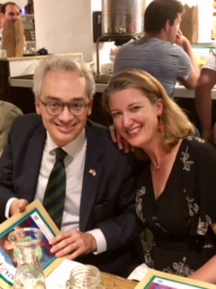 La Delegazione di Tel Aviv, in occasione della riunione conviviale, si è riunita presso il ristorante "Ernesto 90". Foto 1: la Delegata Cinzia Klein con lo chef Ernesto. Foto 2: la Delegata Cinzia Klein con l'Ambasciatore d'Italia SE Gianluigi Benedetti e la moglie Sabina (nominata Accademica Onoraria della Delegazione) . Foto 3: il piatto principale della serata, pasta cacio e pepe, realizzata dallo chef Ernesto. Foto 4 e 5: altri piatti preparati in occasione della cena.