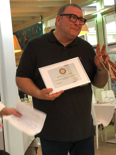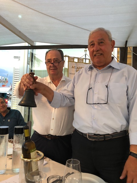 Il passaggio della Campana, della Delegazione di Pisa, si è svolto nel porto turistico di Boccadarno a Marina di Pisa. Foto 1: passaggio di campana tra l'ex Delegato Franco Milli (a sinistra) e il neo Delegato Enrico Bonari (a destra). Foto 2: Renzo Quercioli, titolare del ristorante "Yacht Club Repubblica Marinara", a cui è stato consegnato il Diploma di Buona Cucina.