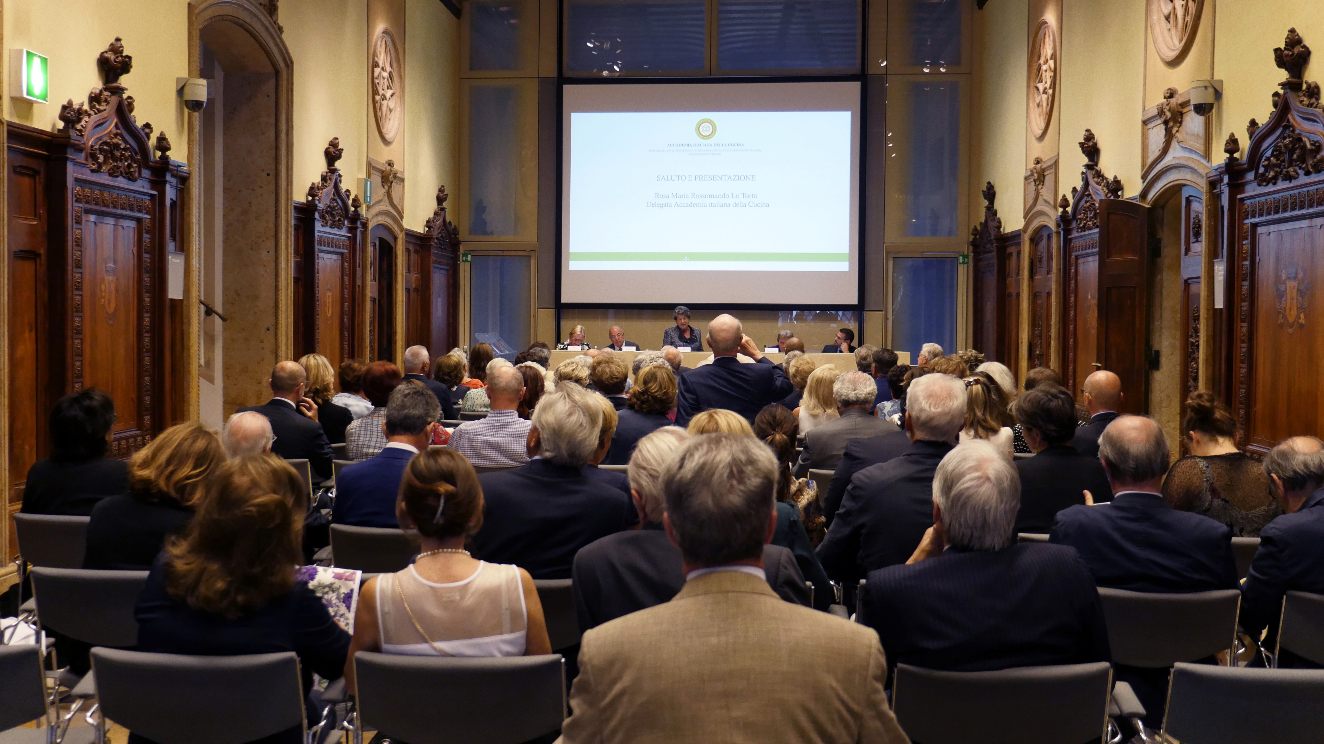 Il 7 settembre si è tenuto a Venezia, alla presenza del Segretario Generale Roberto Ariani, un convegno dal titolo "Artigianato alimentare e Genius loci. Il segreto del Made in Italy" cui è seguita la cerimonia di consegna dei premi Dino Villani e Massimo Alberini agli assegnatari del prestigioso riconoscimento. Foto 1: Introduzione della Delegata di Venezia Rosa Maria Rossomando Lo Torto e pubblico in sala (sede del convegno e della premiazione Palazzo Franchetti). Foto 2: intervento del Segretario Generale Roberto Ariani. Foto 3 (da sinistra): Carmelina Palmisano, assegnataria del premio Villani per il bussolà biscotto veneziano tipico, il Segretario Generale Roberto Ariani e la Delegata Rosa Maria Rossomando Lo Torto. Foto 4. la consegna del premio Massimo Alberini ad Antonio Rosa Salva in rappresentanza della Ditta.