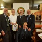 Le Delegazioni dei Colli Euganei - Basso Padovano e di Venezia si sono riunite presso il ristorante "La Torre" di Monselice in occasione della riunione conviviale. Foto 1: il Delegato dei Colli Euganei - Basso Padovano, Pietro Fracanzani ( a destra), insieme alla Delegata di Venezia, Rosa Lo Torto Rossomando (a sinistra), consegnano il diploma di cucina eccellente dell'Accademia a Norberto e Franca Gallo del ristorante La Torre.