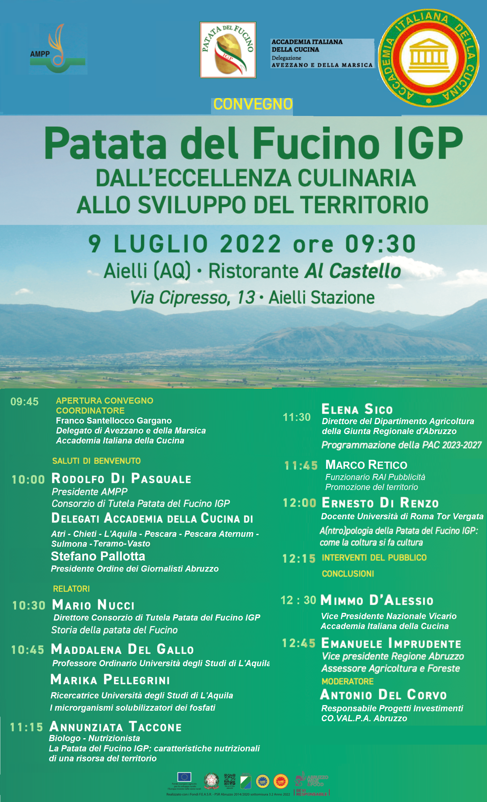 Si terrà il 9 luglio un convegno dedicato dalla Delegazione di Avezzano e dalla Marsica sul tema "Patata del Fucino IGP - Dall’eccellenza culinaria allo sviluppo del territorio".