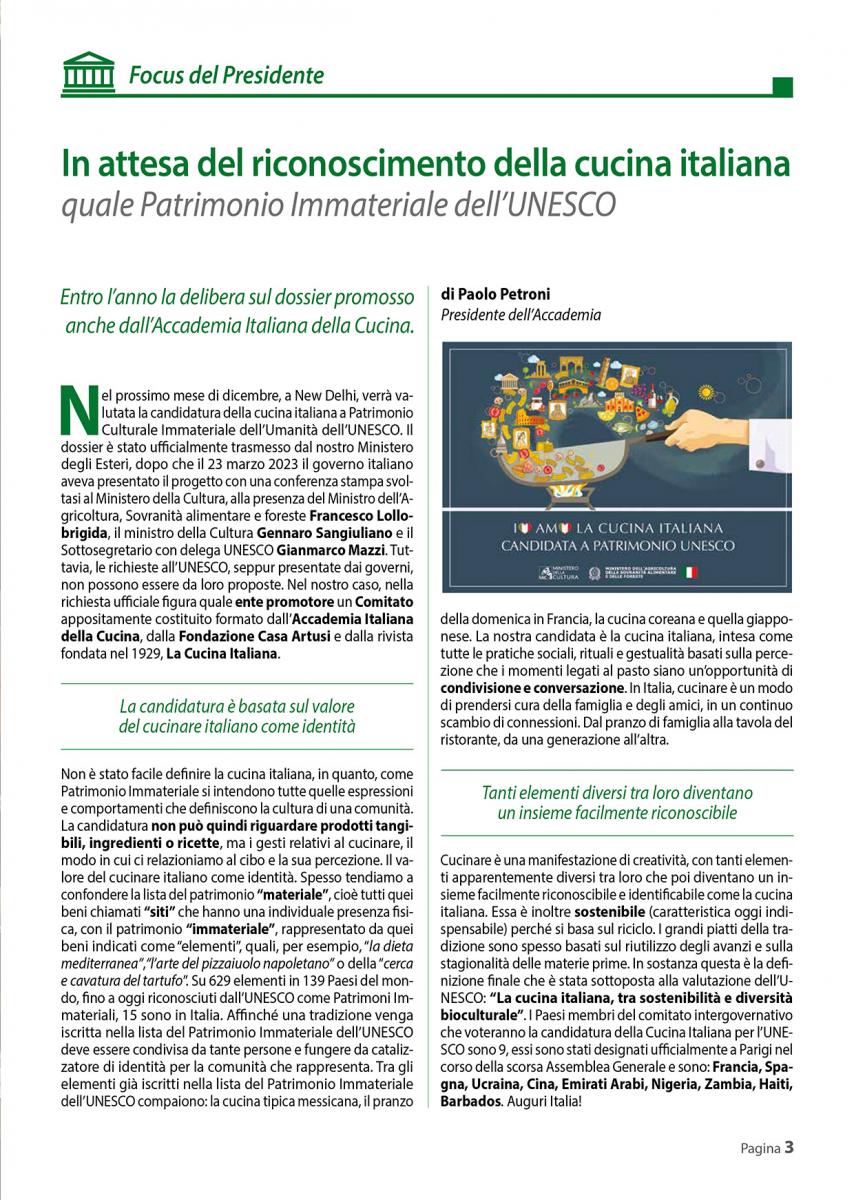 In attesa del riconoscimento della cucina italiana quale Patrimonio Immateriale dell’UNESCO
