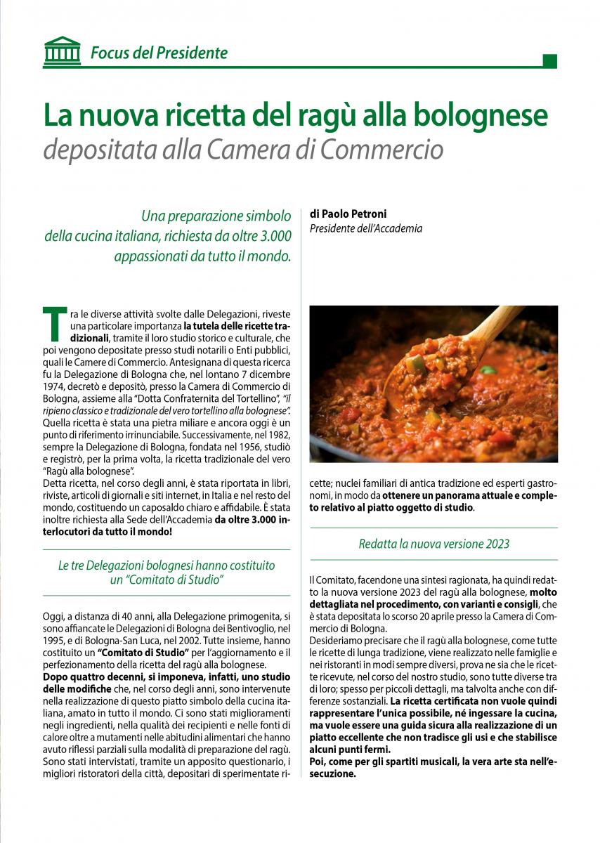 La nuova ricetta del ragù alla bolognese depositata alla Camera di Commercio