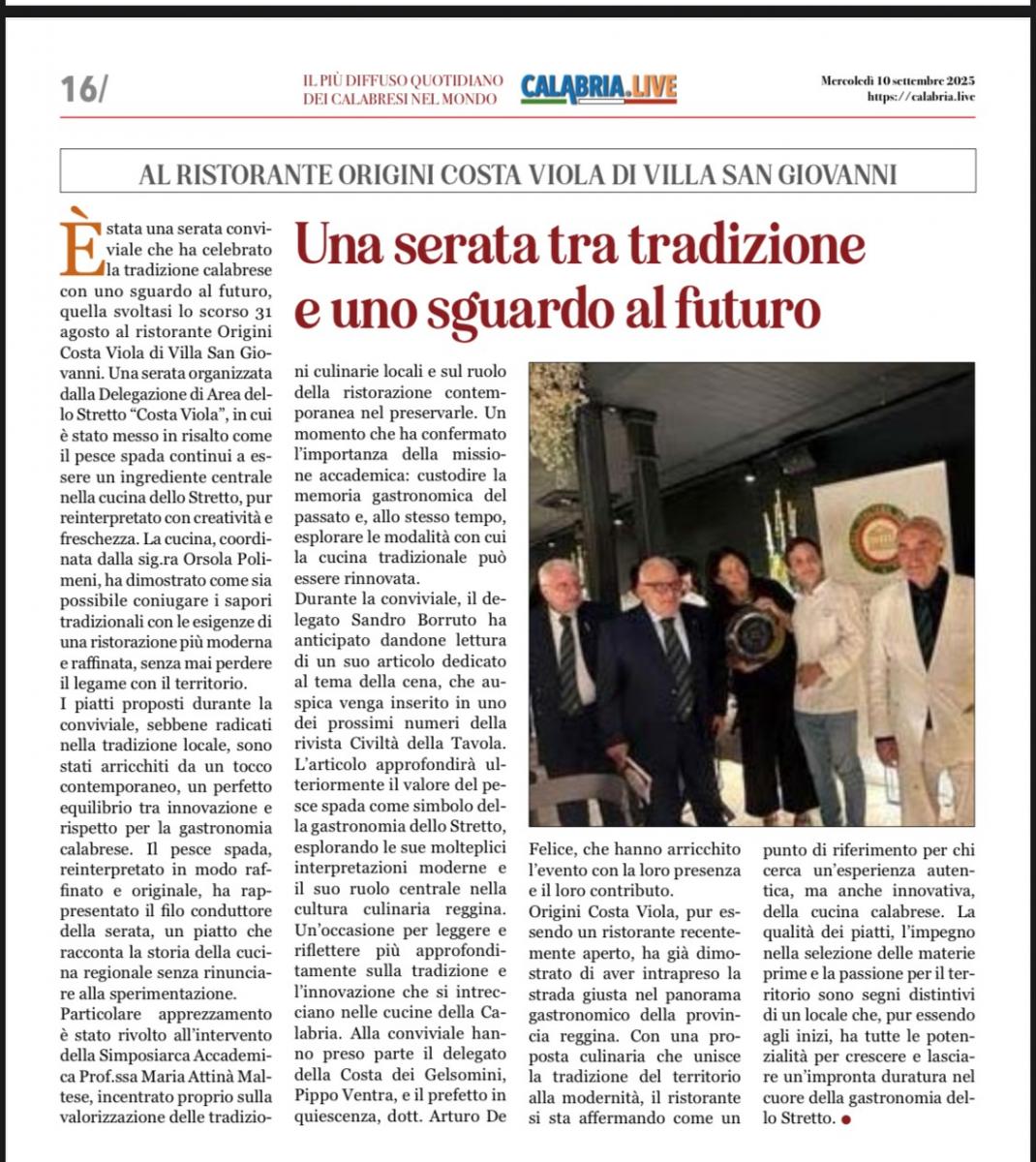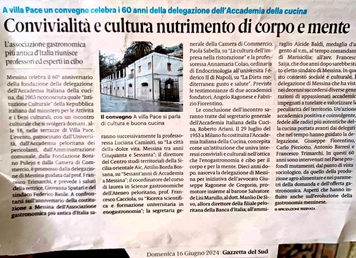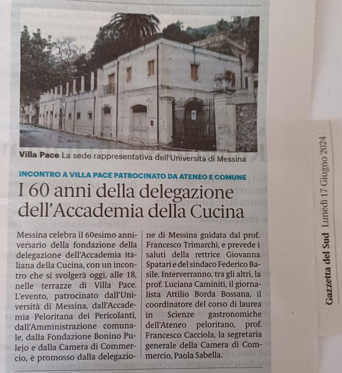 Delegazione di Messina: l'Accademia rende merito alla gastronomia messinese