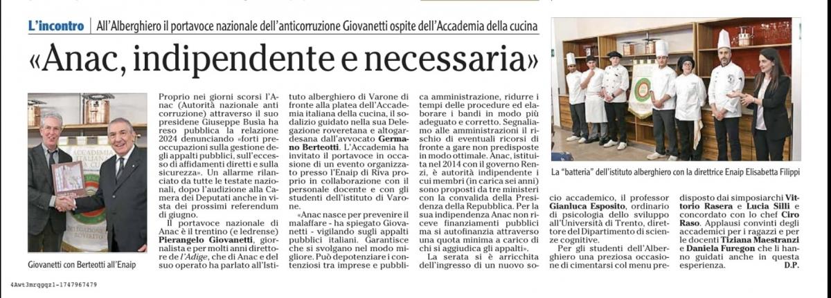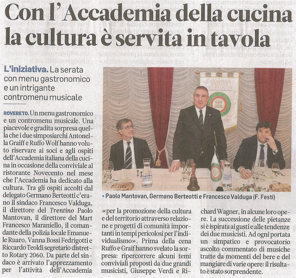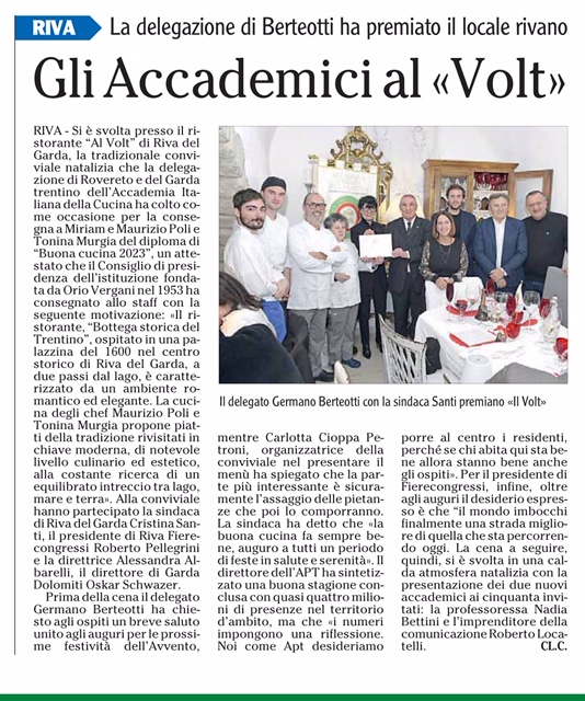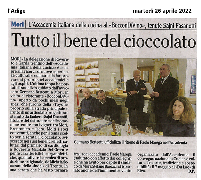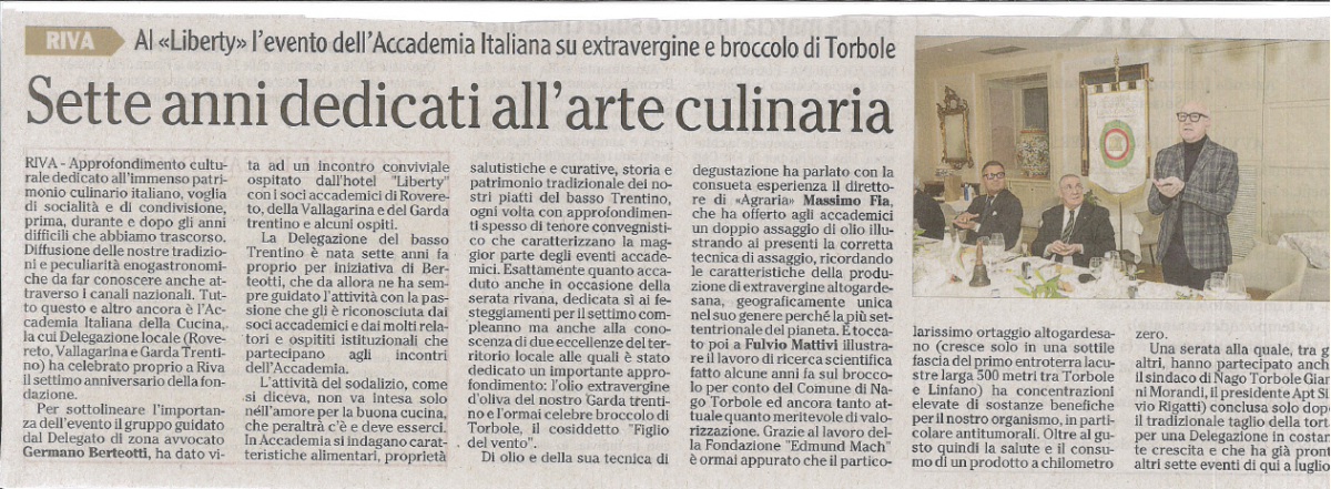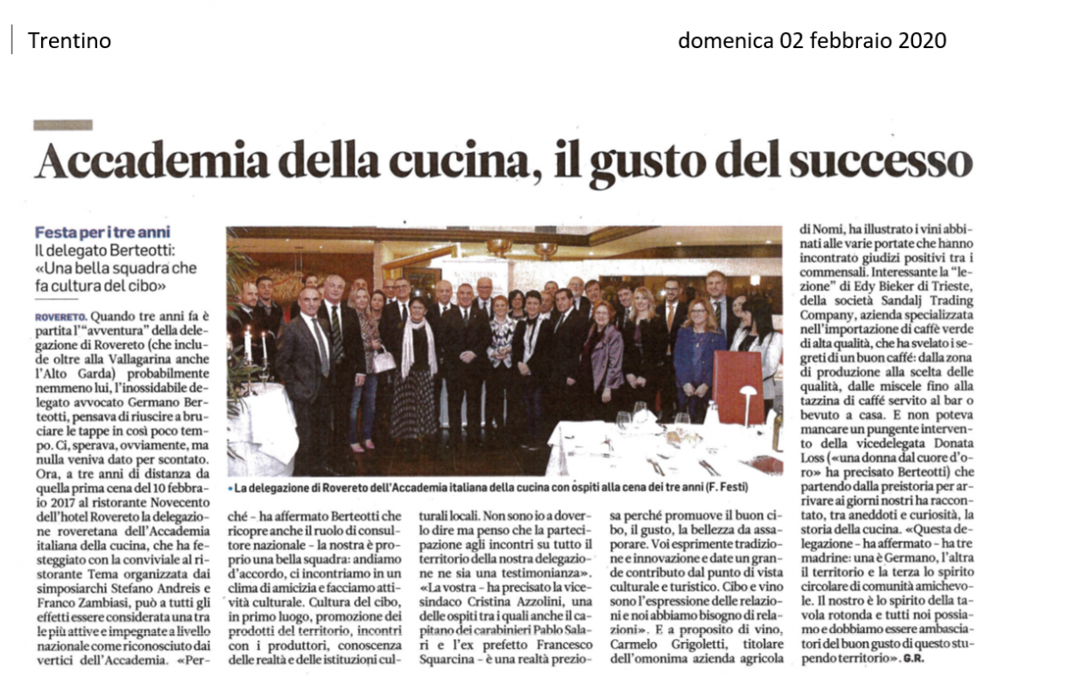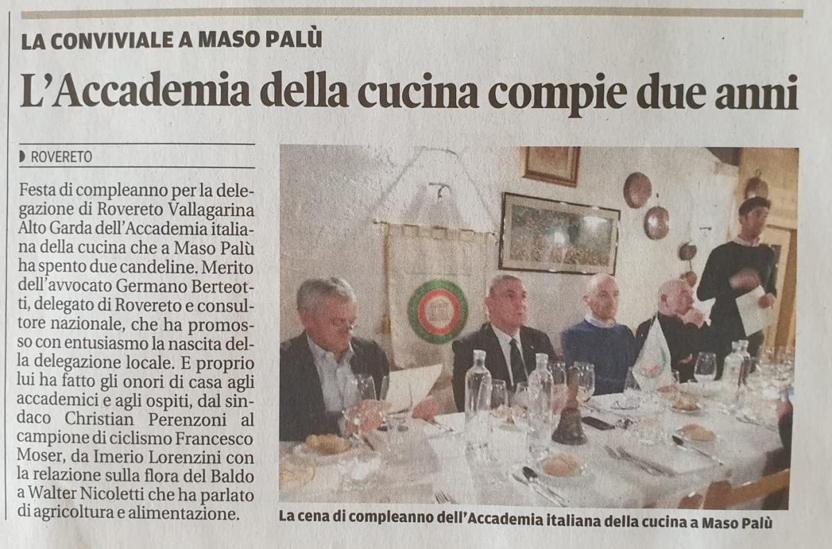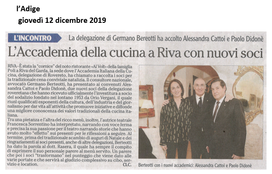 Delegazione di Rovereto e del Garda Trentino: riunione conviviale e consegna Diploma di Buona Cucina