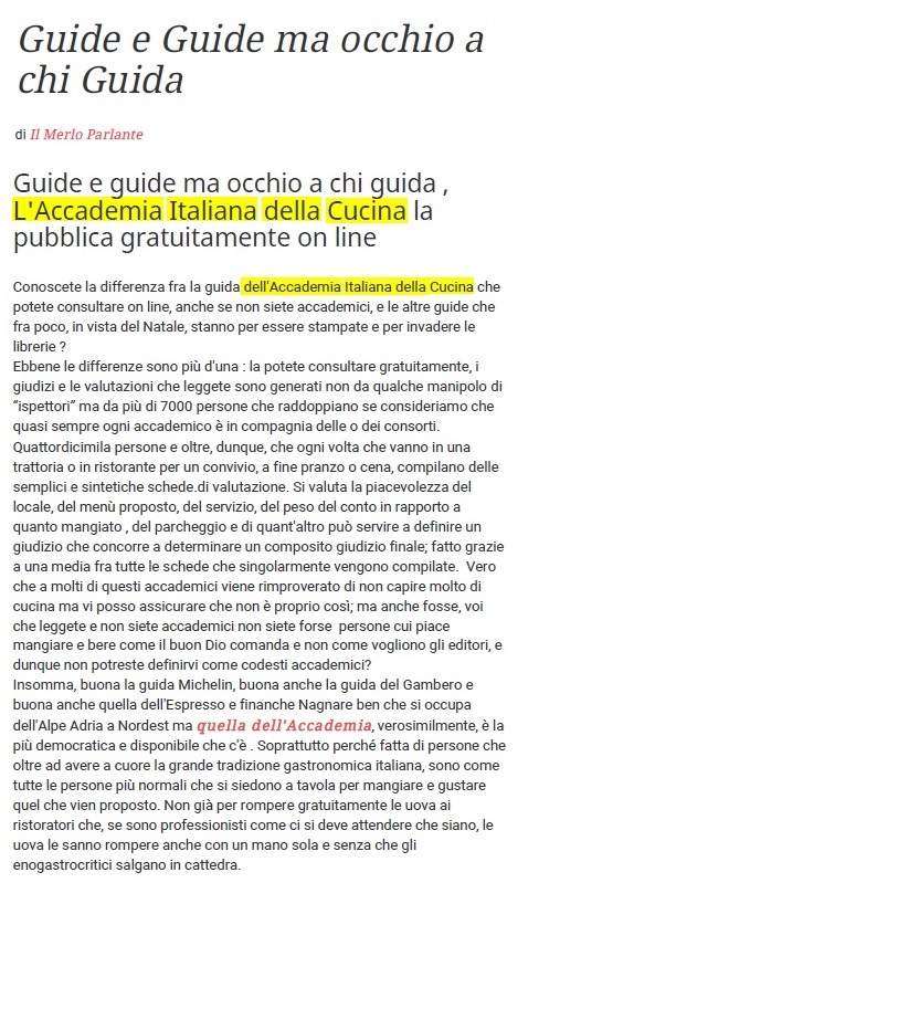 Conoscete la differenza fra la guida dell'Accademia Italiana della Cucina che potete consultare on line, anche se non siete accademici, e le altre guide?