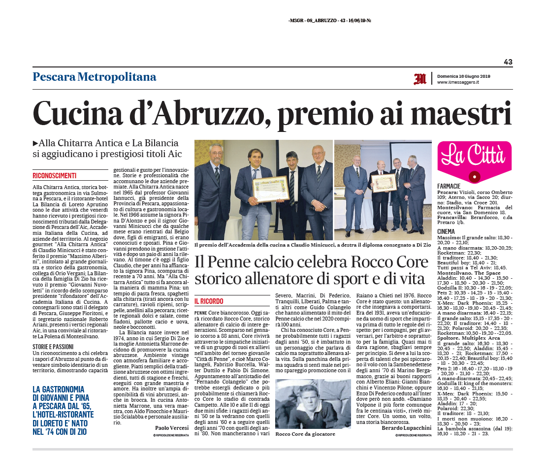 Delegazione di Chieti, premio Nuvoletti al ristorante Nino